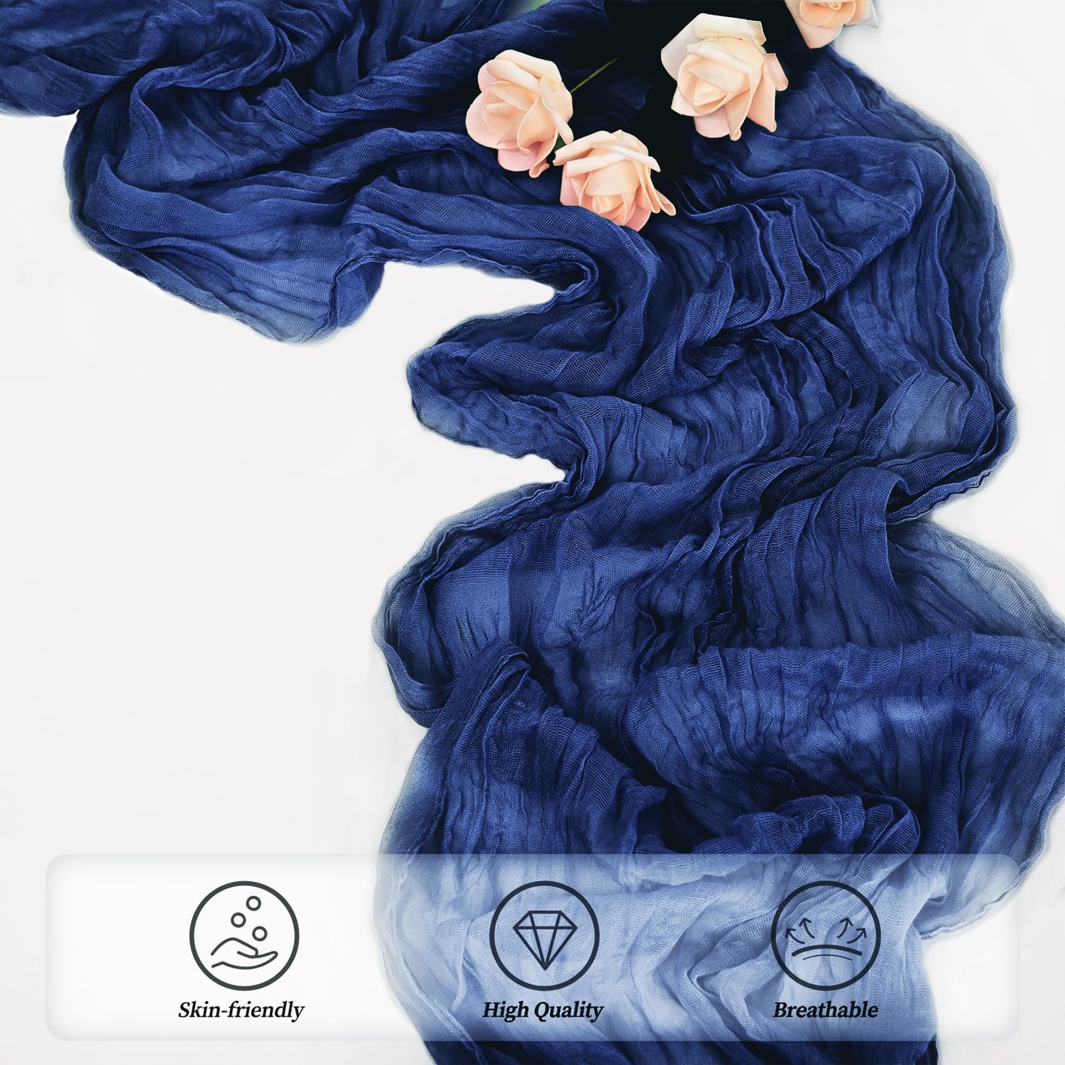 • Soft Table Runner Materials: This cheesecloth table runner is made of high-quality gauze, with a very soft touch and long-lasting durability. The exquisite edge stitching makes it look even more beautiful. It hangs naturally, and the pure plant dye does not fade, has no odor, and can be reused. It is romantic for every occasion of your life.