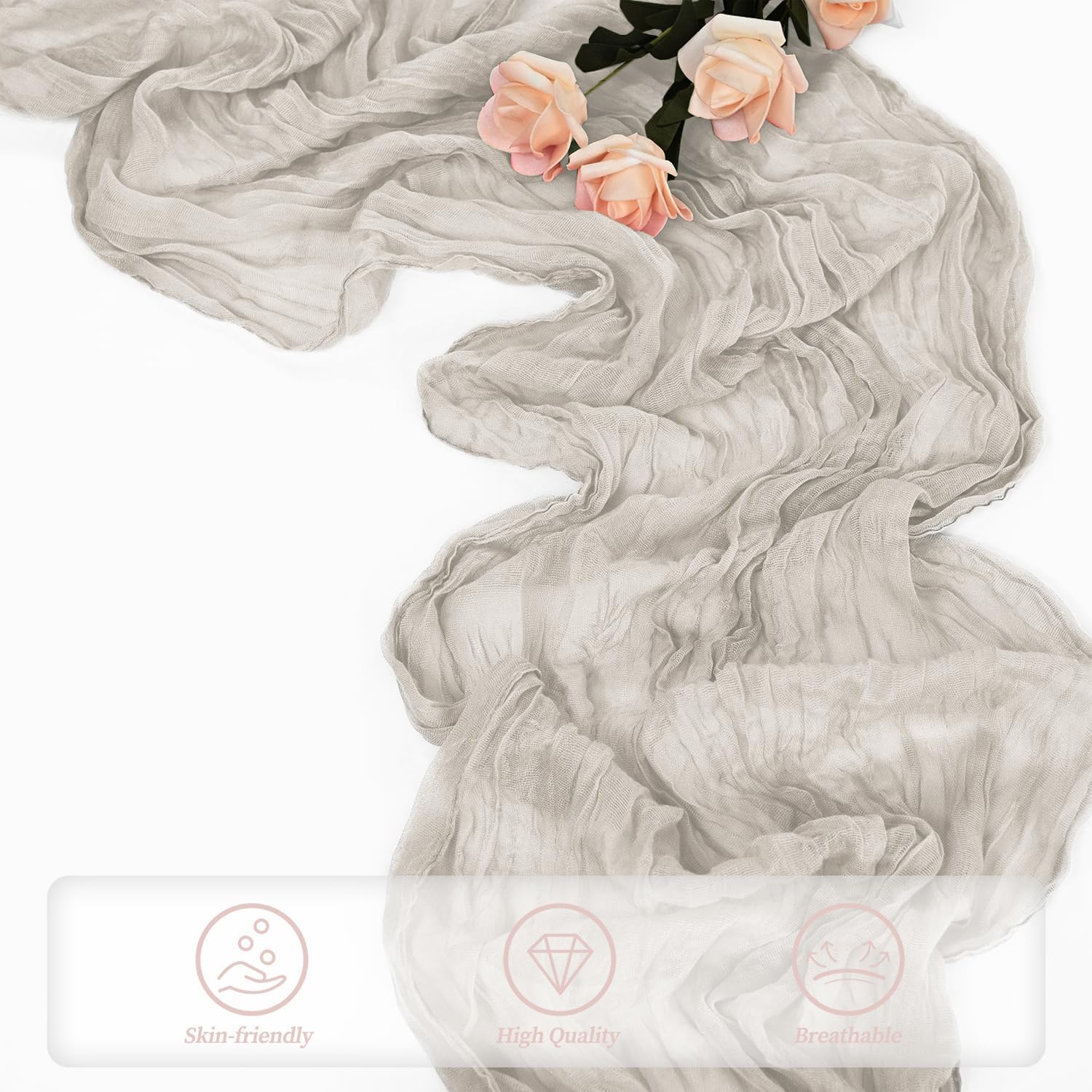 • Elegant Design: This cheese cloth runner is a perfect decorative element for dining tables and parties. Its pleated design makes it very elegant and romantic, flowing naturally on the table like water, making the dining table for weddings and parties look very beautiful. It can be paired with flowers and candlesticks, or tied with a bow to create various romantic feelings.