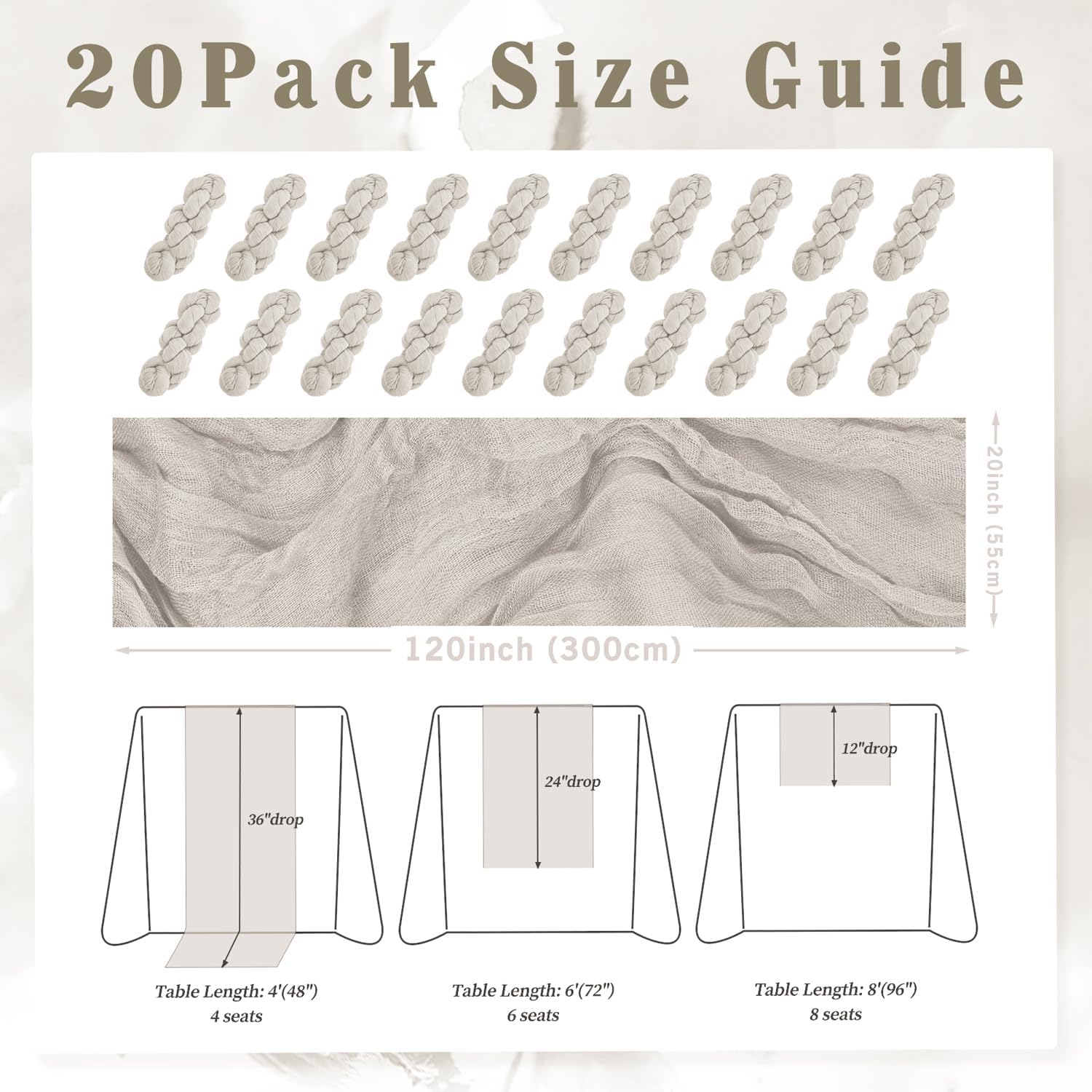 20 Pack Rose Brown Cheesecloth Table Runner 10FT Rustic Gauze Fabric Cheese Cloth Table Runner for Wedding Bridal Baby Shower Table Decor Boho Sheer Birthday Party Table Decorations 20 x 120 Inch Long