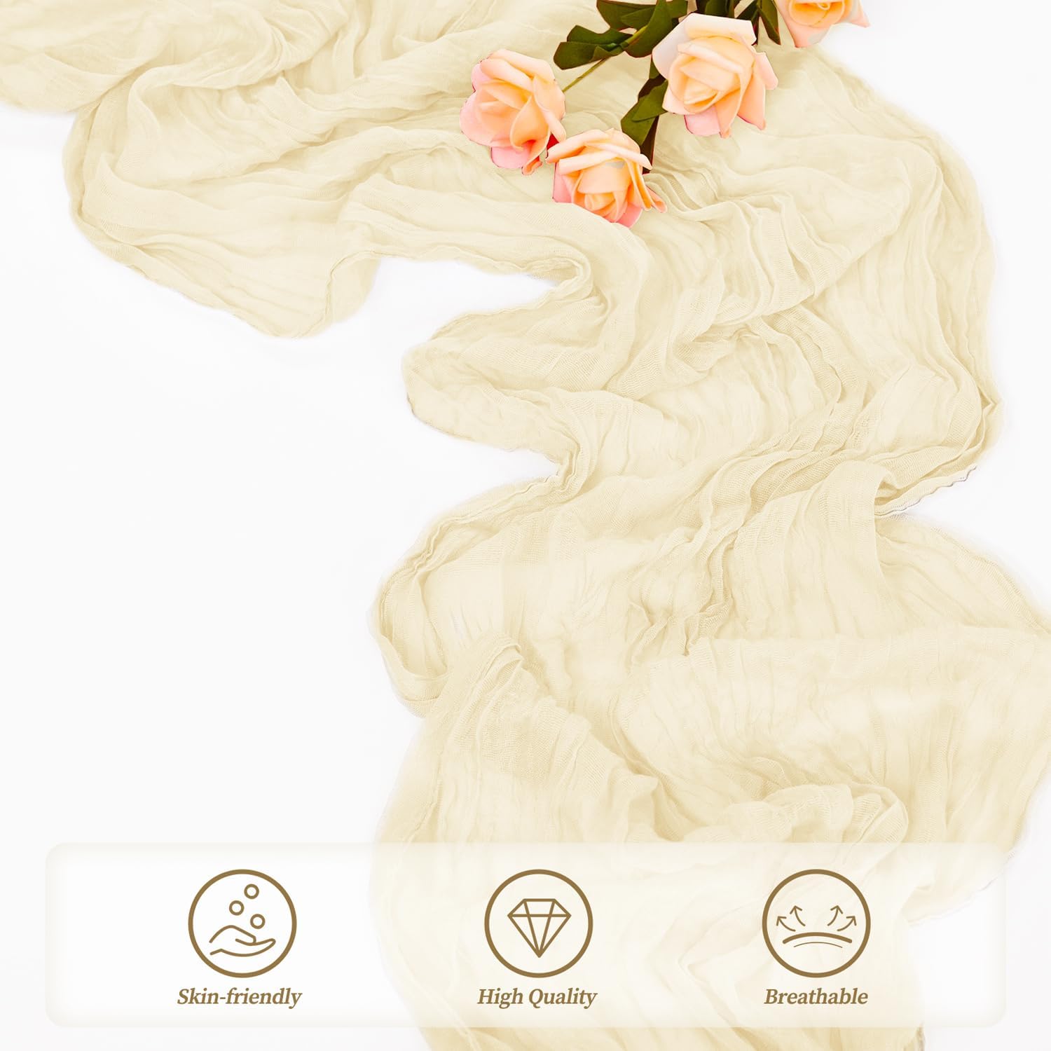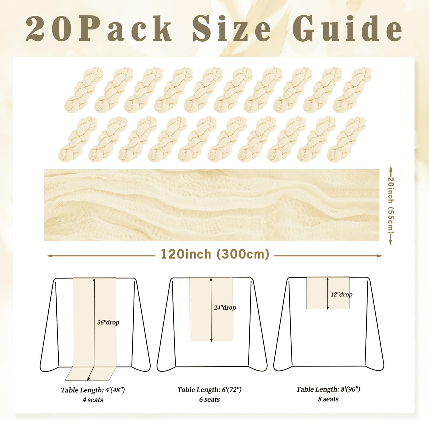 10FT 20 Pack Beige Cheesecloth Table Runner 20 x 120 Inch Long Rustic Gauze Fabric Cheese Cloth Table Runner for Wedding Bridal Baby Shower Table Decorations Boho Sheer Birthday Party Table Decor