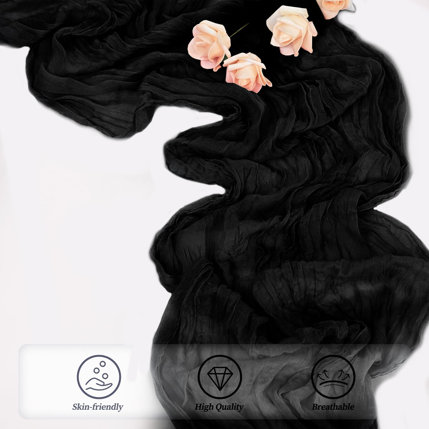 10FT 6 Pack Black Cheesecloth Table Runner 20 x 120 Inch Long Boho Fabric Rustic Cheese Cloth Table Runner for Wedding Bridal Shower Baby Shower Gauze Sheer Birthday Party Table Decorations