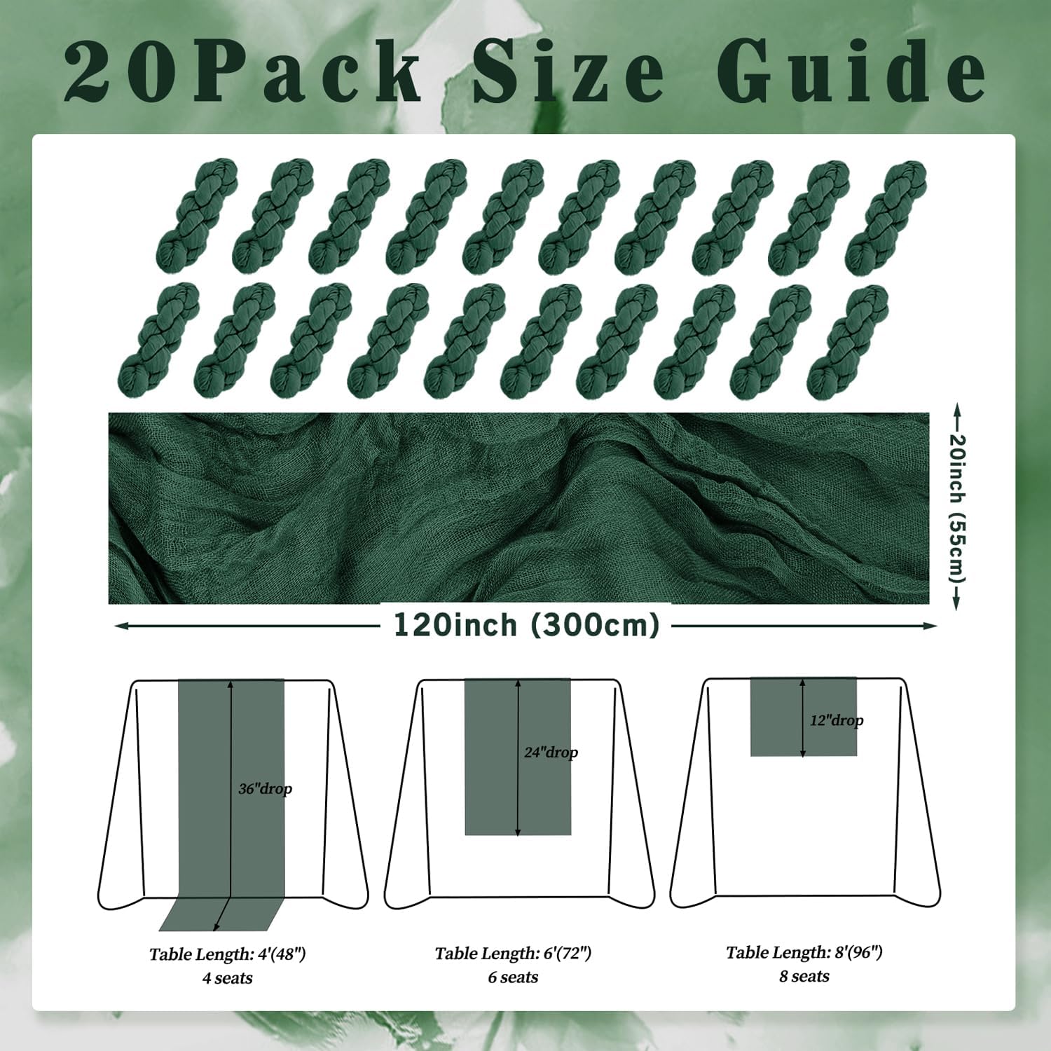 Emerald Green 20 Pack Cheesecloth Table Runner 10FT Boho Fabric Rustic Cheese Cloth Table Runner for Wedding 20 x 120 Inch Long Bridal Shower Baby Shower Gauze Sheer Birthday Party Table Decorations
