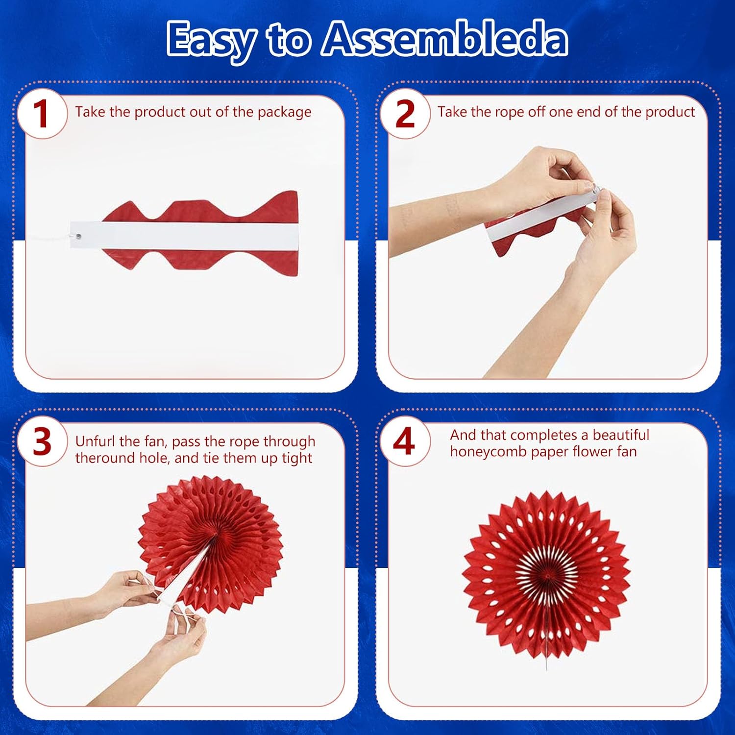 • 【Hanging paper fan set】Paper fan set includes 20 paper fans of different sizes, among which the paper flower fan size is 14 inches * 3, 12 inches * 5, 8 inches * 6, and 6 inches*6.