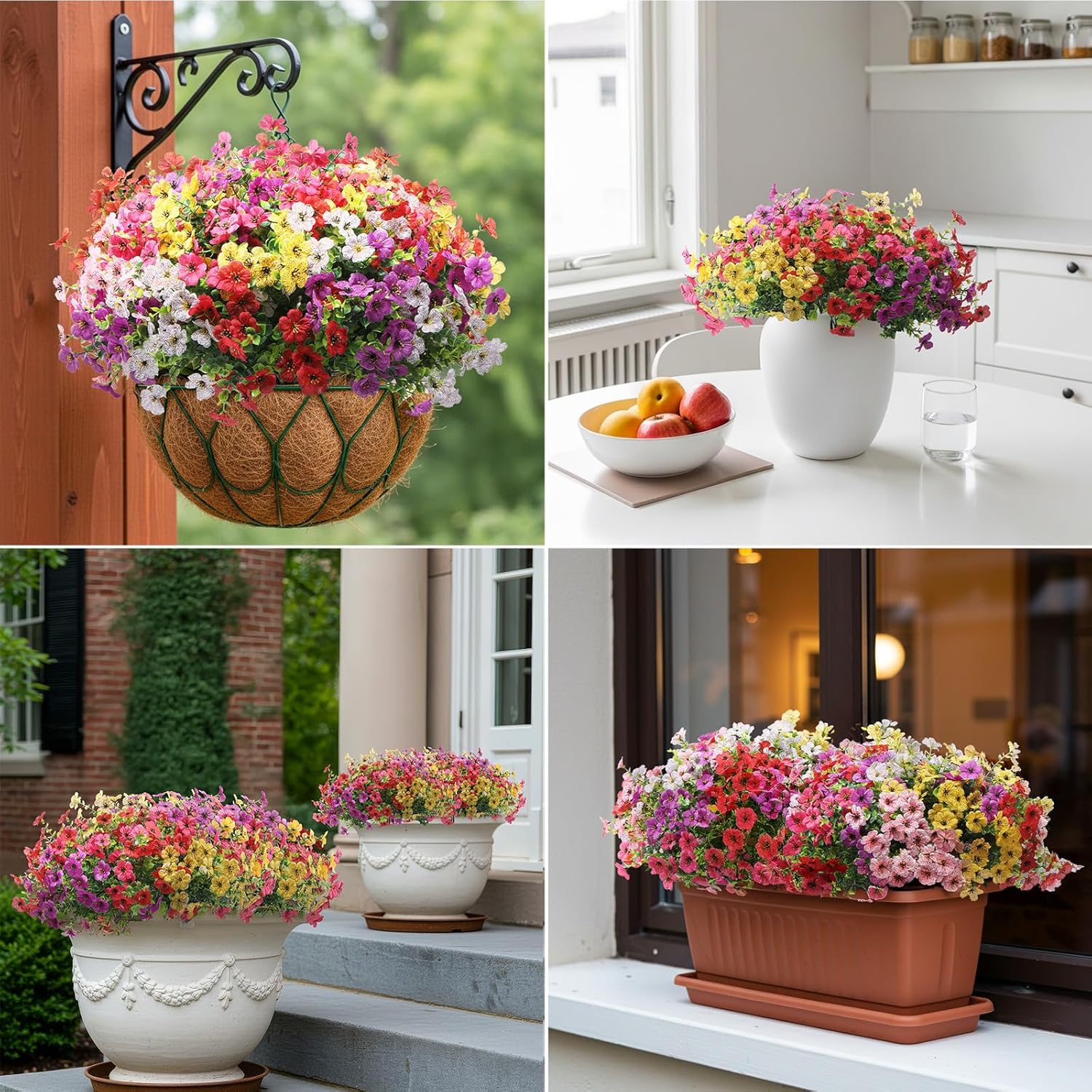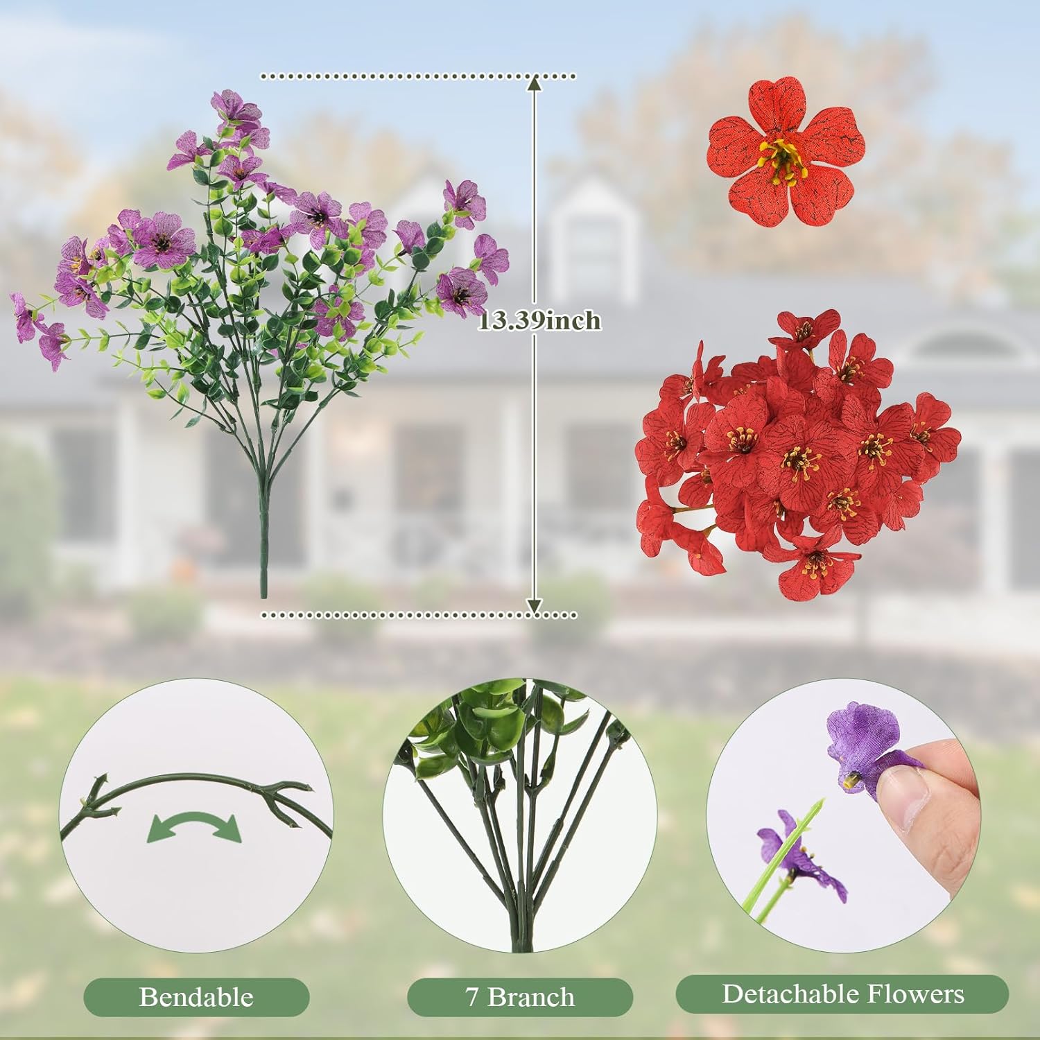 • Realistic Faux Flower Bouquets: The colorful fake flowers with realistic textures and flexible stems are very close to real flowers. Ideal decoration for garden, front doors, window, pots, etc.