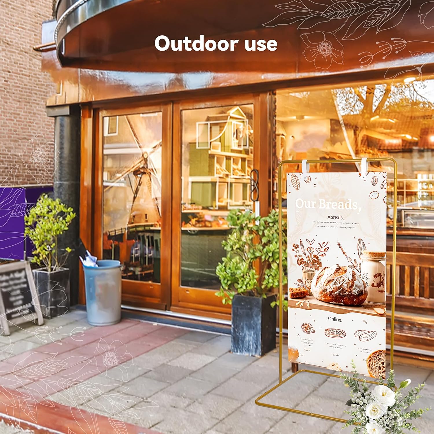 • Heavy Duty Easel Stand: Crafted from heavy-duty iron, our hanging sign stand are built to withstanding wind and rain. The wide and sturdy base will keep the signage upright and secure, ensuring your event goes smoothly