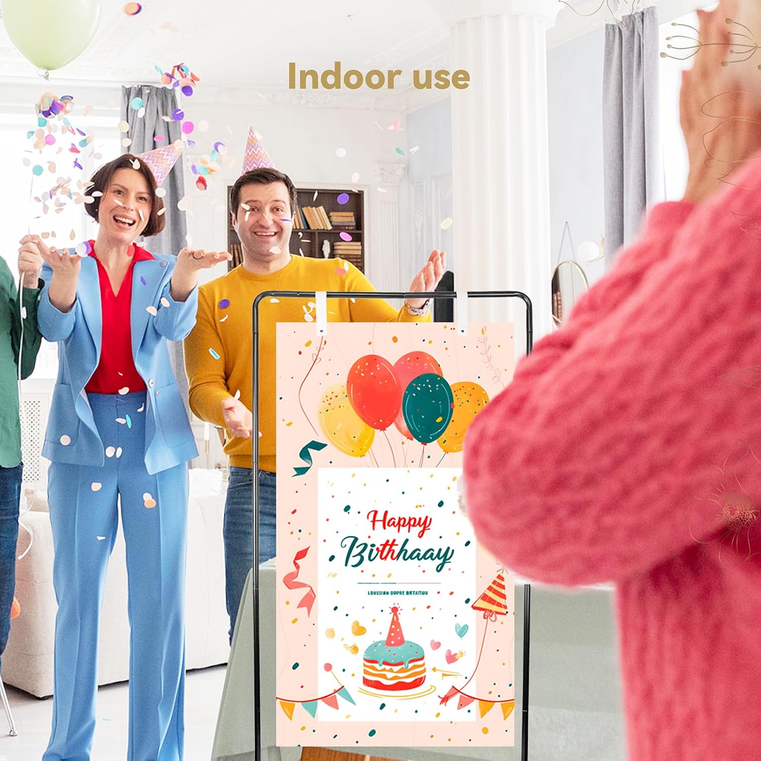 • Easy to Assemble/Disassemble: Follow the included installation construction to quickly assemble the large easel stand for display, allowing you to enjoy the process of your event. This versatile stand holder is ideal for baby showers, parties, bridal showers, weddings, housewarming, celebrations, storefront, exhibitions, conferences, etc(Physical sign not included)