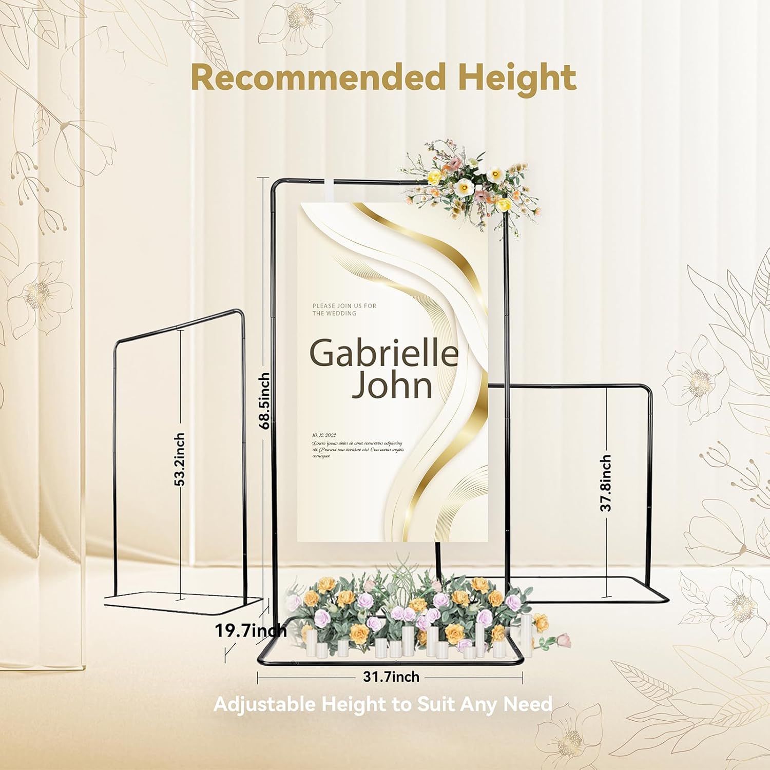 • Adjustable Height: 3 recommended available height (68.5"/53.2"/37.8"). The metal easel stand for sign features a 31.7" wide base, designed to stably support a large sign, poster, seating chart and similar displays & while maintaining refined visual elegance