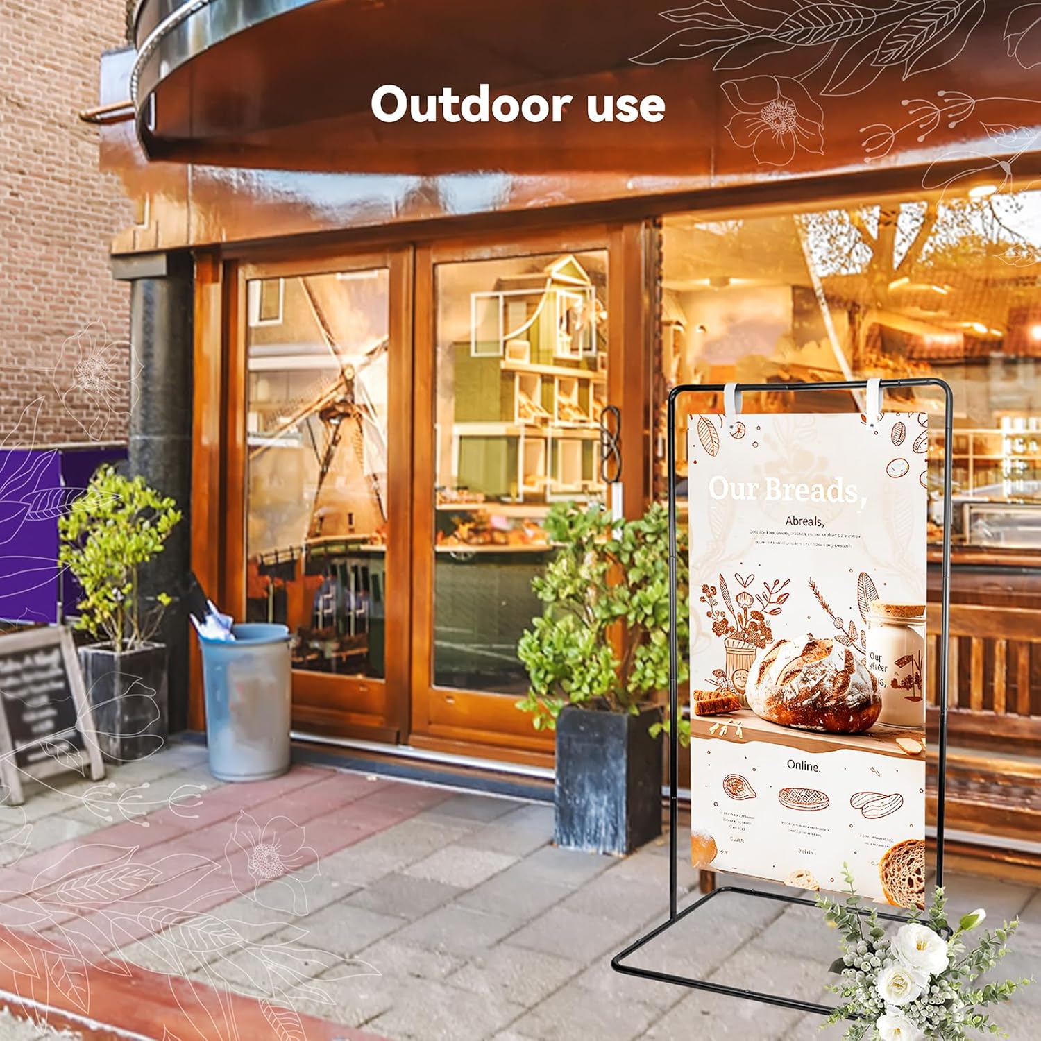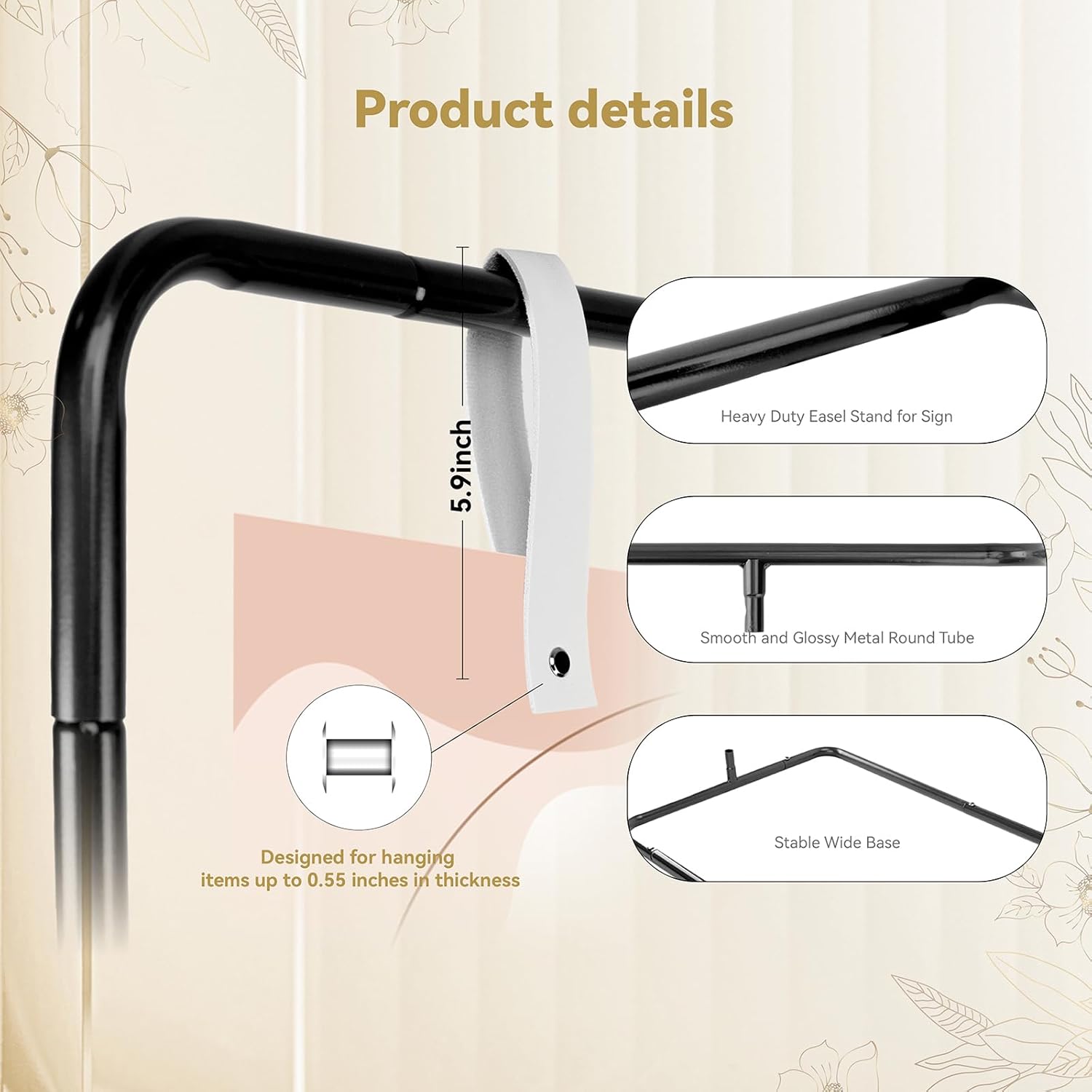 • Heavy Duty Easel Stand: Crafted from heavy-duty iron, our hangging sign stand are built to withstanding wind and rain. The wide and sturdy base will keep the signage upright and secure, ensuring your event goes smoothly