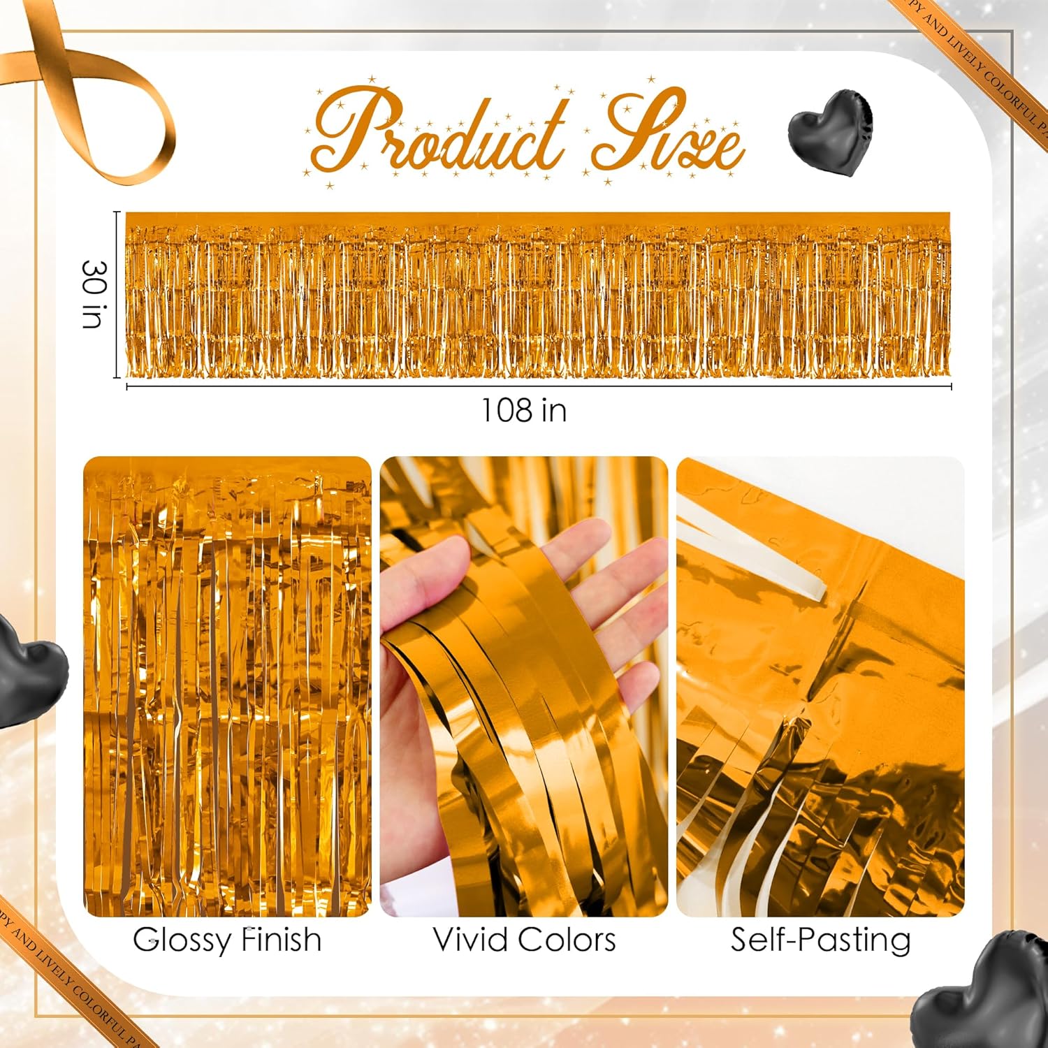 2 Pack Black Orange Table Skirts, 29x108" Metallic Foil Tinsel Fringe Table Skirt for Rectangle Tables Streamer Curtains Backdrop, Party Decorations for Birthdays, Weddings, Holidays