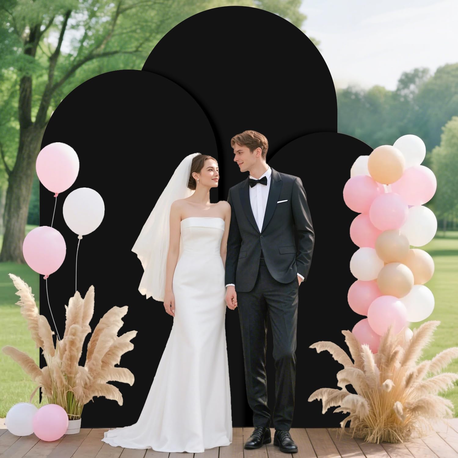 FUHSY Metal Arch Backdrop Stand and Cover Set 6FT, 6.6FT, 7.2FT Black Arch Cover Set of 3 Wedding Backdrop Arch Stands Chiara Arched Frame with Backdrop Covers for Birthday Party Baby Shower Decor