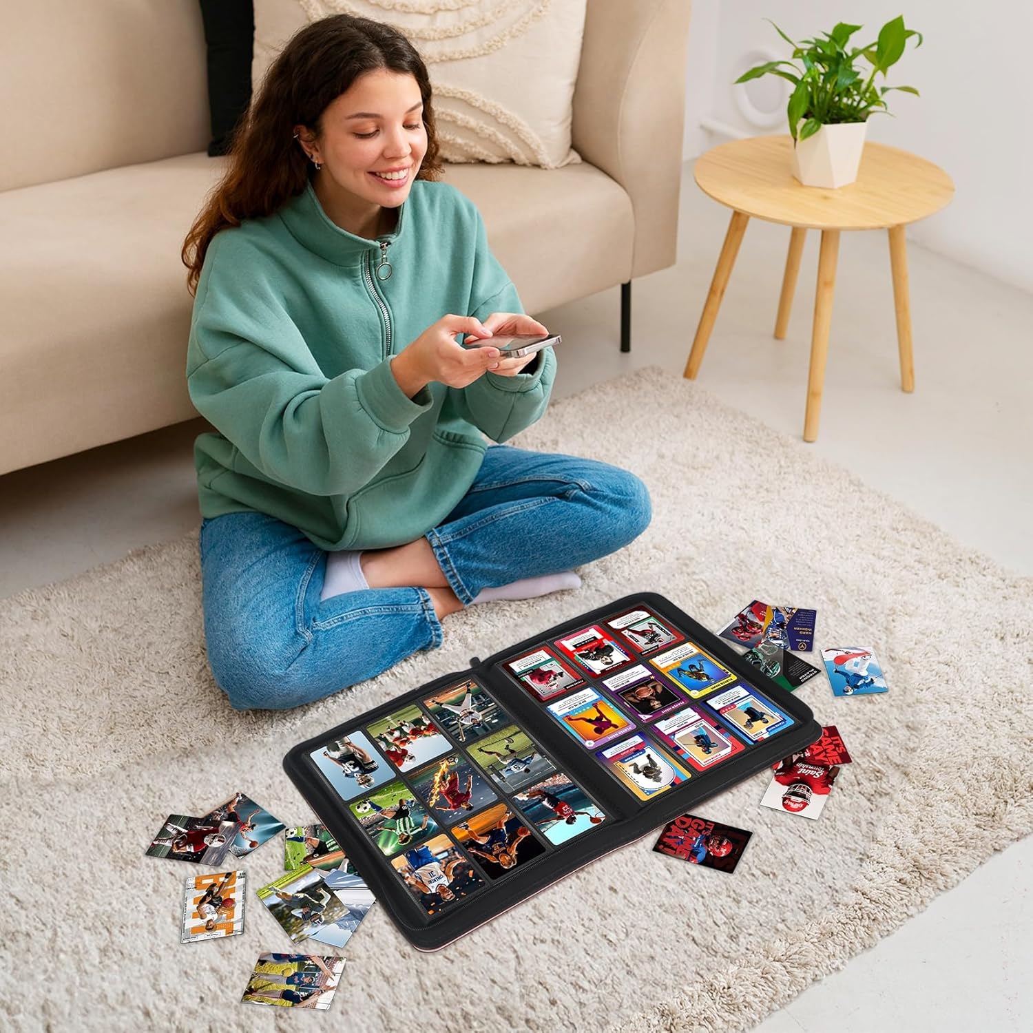 • Ringless & Zippered Design: Our large-capacity card folder features a ringless structure and a smooth, sturdy zipper to eliminate page misalignment and accidental scratches. The durable, easy-glide zipper with a widened closure offers full-edge protection—keeping your cards securely enclosed and shielded from dust, spills, and drops, whether at home or on the go.