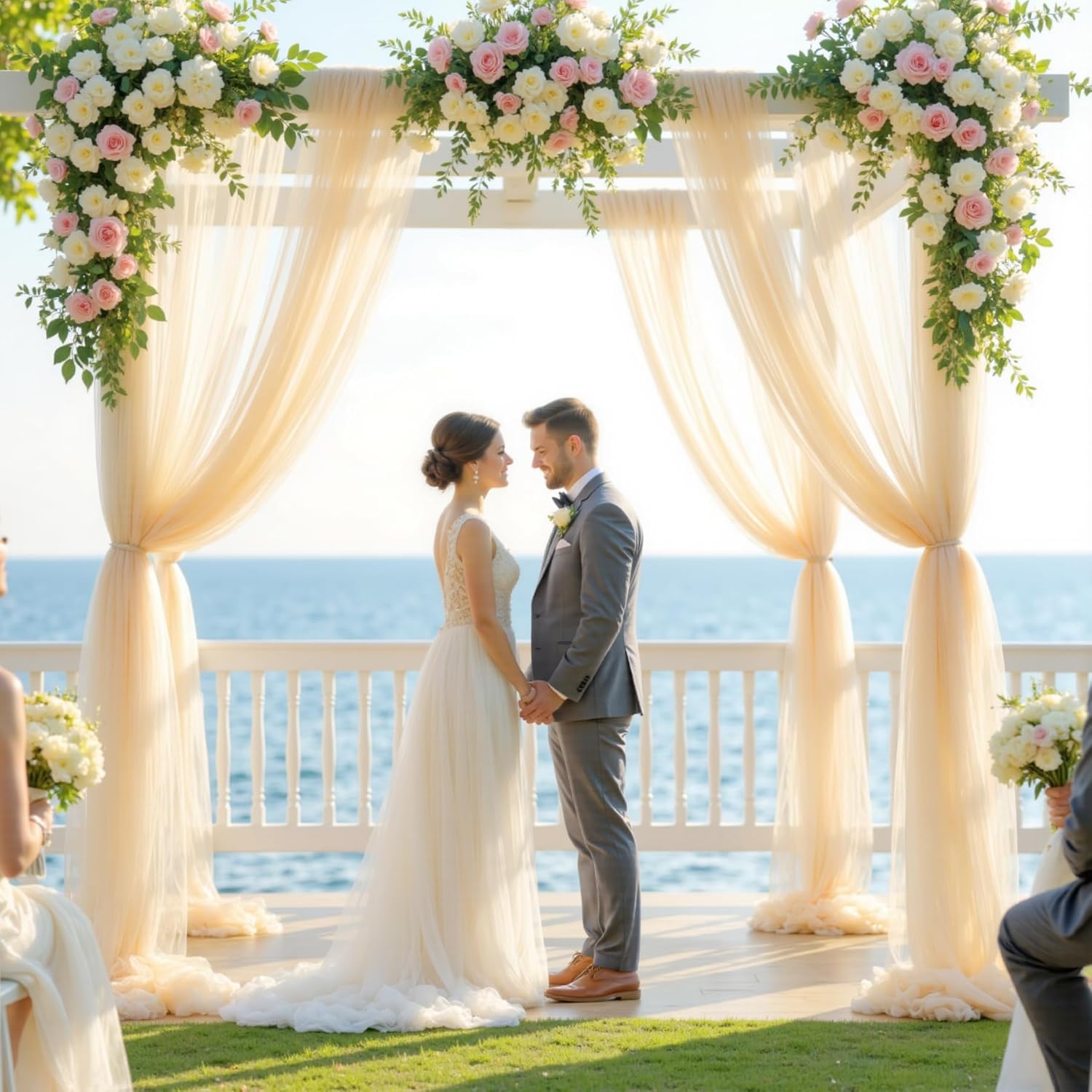 • Wedding Arch Draping Fabric: 100% high-grade polyester tulle, offering unmatched softness and durability. Delicate matte finish with a subtle sheen that catches light elegantly without glare (perfect for photography).Wrinkle-free: Packed on roll with anti-crease lining—unfurls ready-to-use.