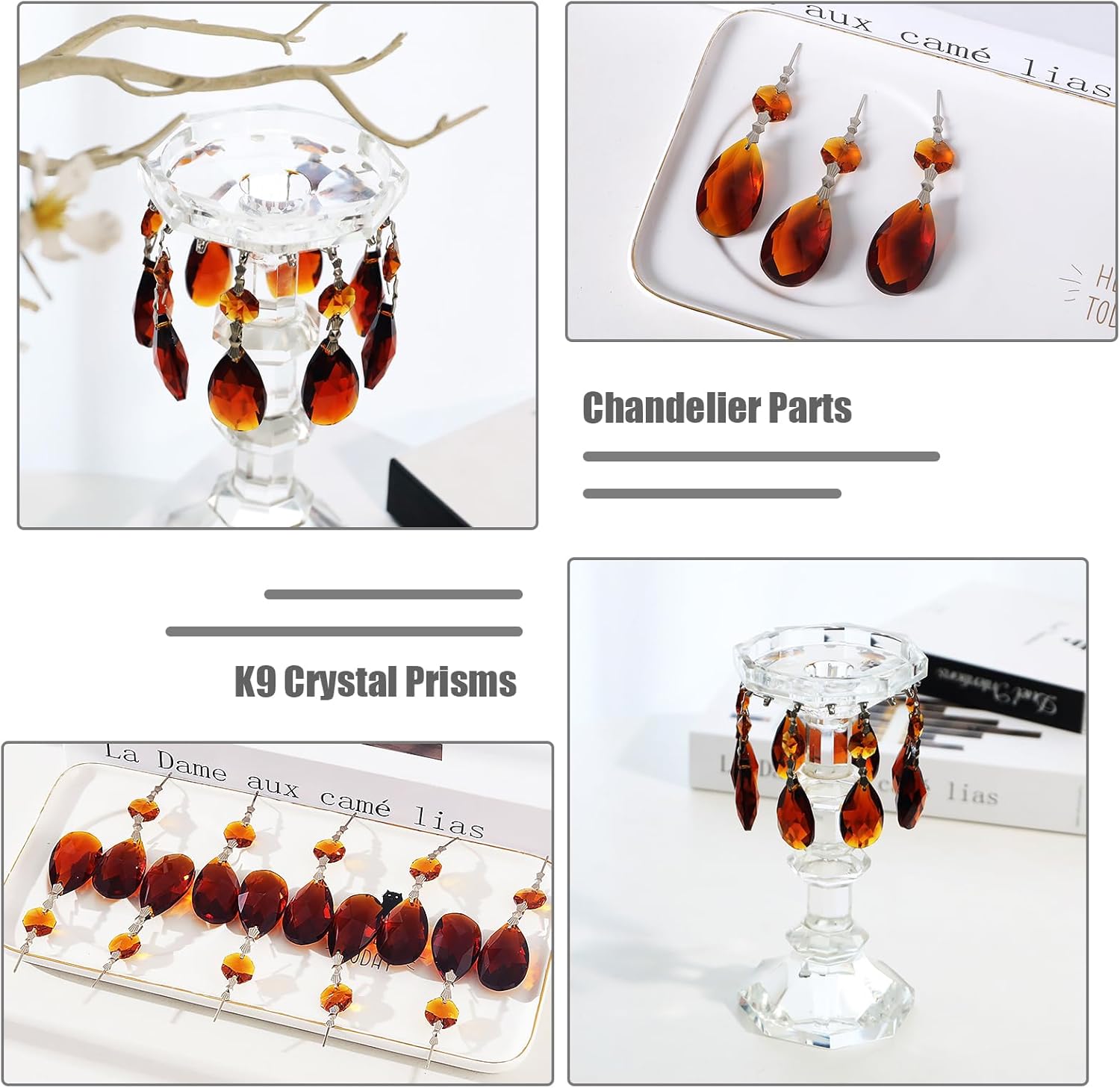 10pcs Crystal Prisms Chandelier Amber Ornament Pendants Rainbow Maker 38mm Drop Prism Hanging Prisms for Wedding Party Chrismtmas Decoration DIY Jewelry