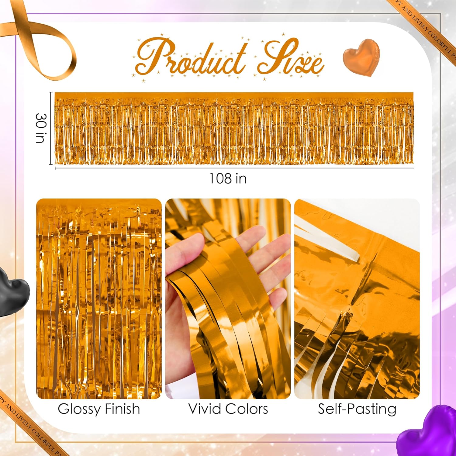 3 Pack Black Dark Purple Orange Table Skirts, 29x108" Metallic Foil Tinsel Fringe Table Skirt for Rectangle Tables Streamer Curtains Backdrop, Party Decorations for Birthdays, Weddings, Holidays