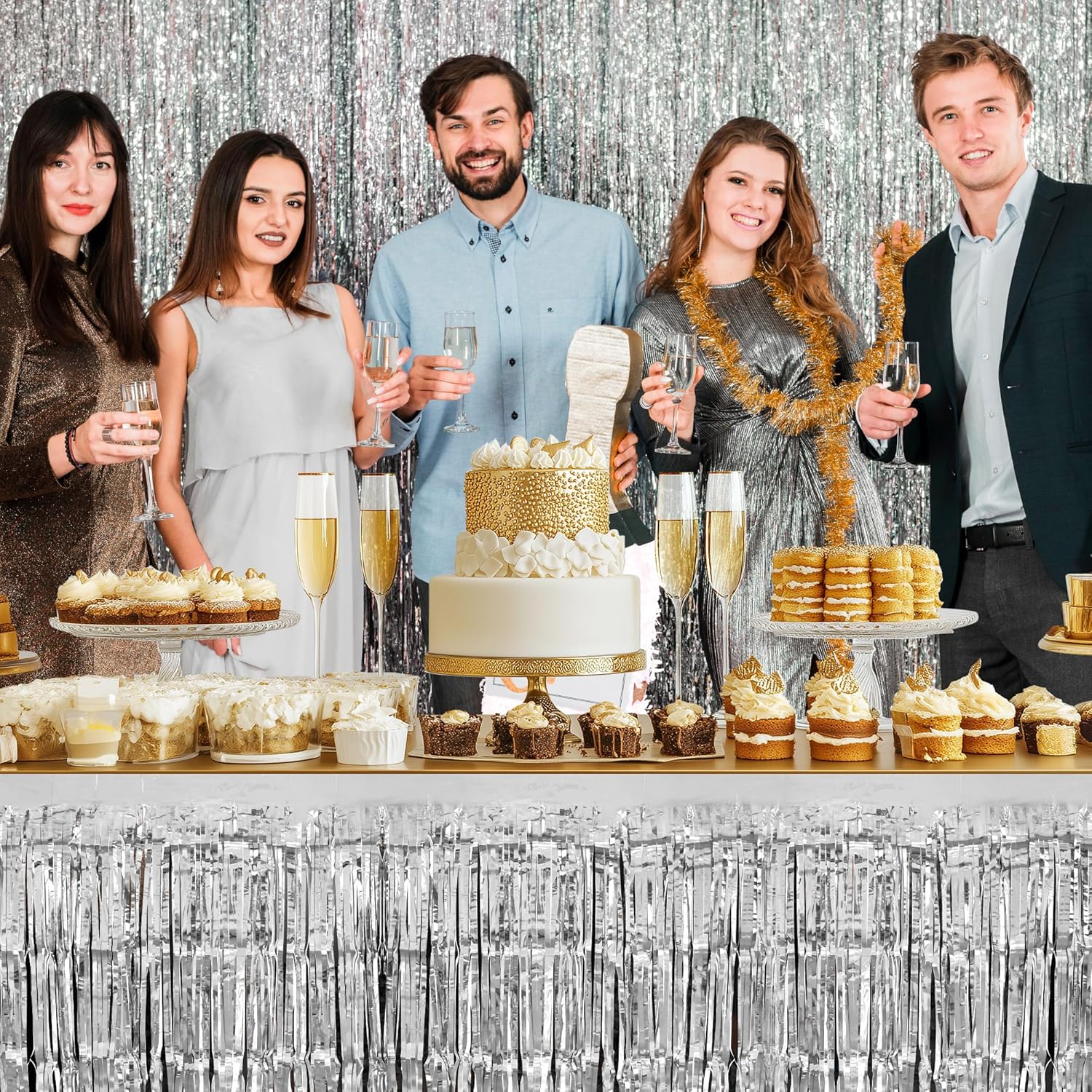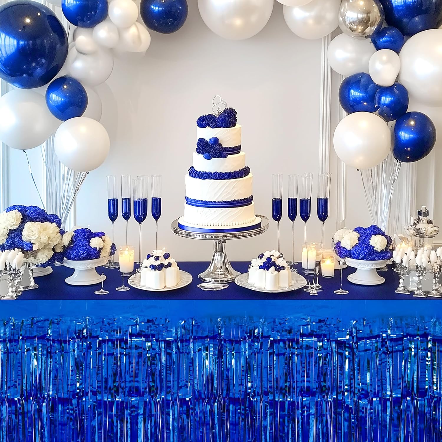 3 Pack Red Dark Blue Silver Table Skirts, 29x108" Metallic Foil Tinsel Fringe Table Skirt for Rectangle Tables Streamer Curtains Backdrop, Party Decorations for Birthdays, Weddings, Holidays