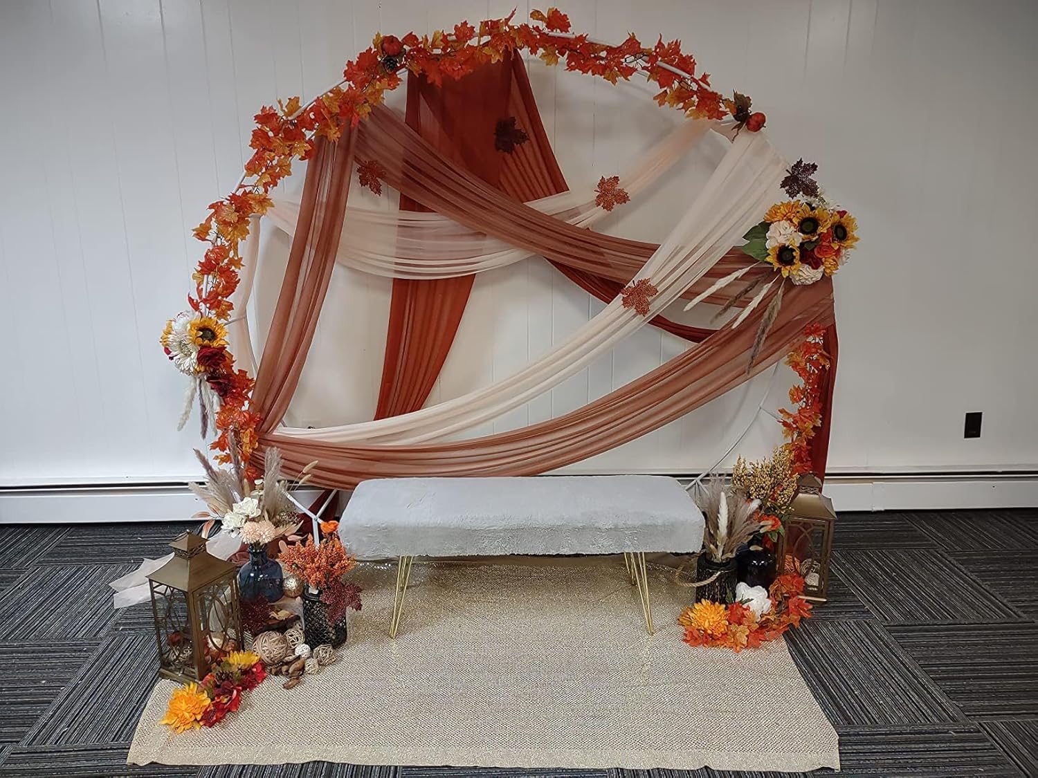 • Wedding Arch Drapes : Wrinkle-Resistant wedding arch draping fabric versatility allows for creative styling with florals, balloons, or lighting, such as a blend of lush greenery, delicate floral arrangements, and soft draping fabrics that create a warm and inviting ambiance. This wedding arches for ceremony is perfect for creating beautiful pleats or letting it float off the floor, adding a very delicate, soft, beautiful touch to your stage at any event.