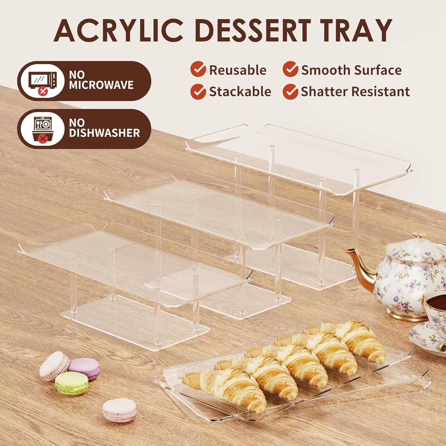 6 Pack Dessert Table Display Set, Clear Acrylic Dessert Display Stands with 3 Pack Dessert Tray Platters Buffet Risers for Pastry Food Fruit Candy Treat for Wedding Birthday Party