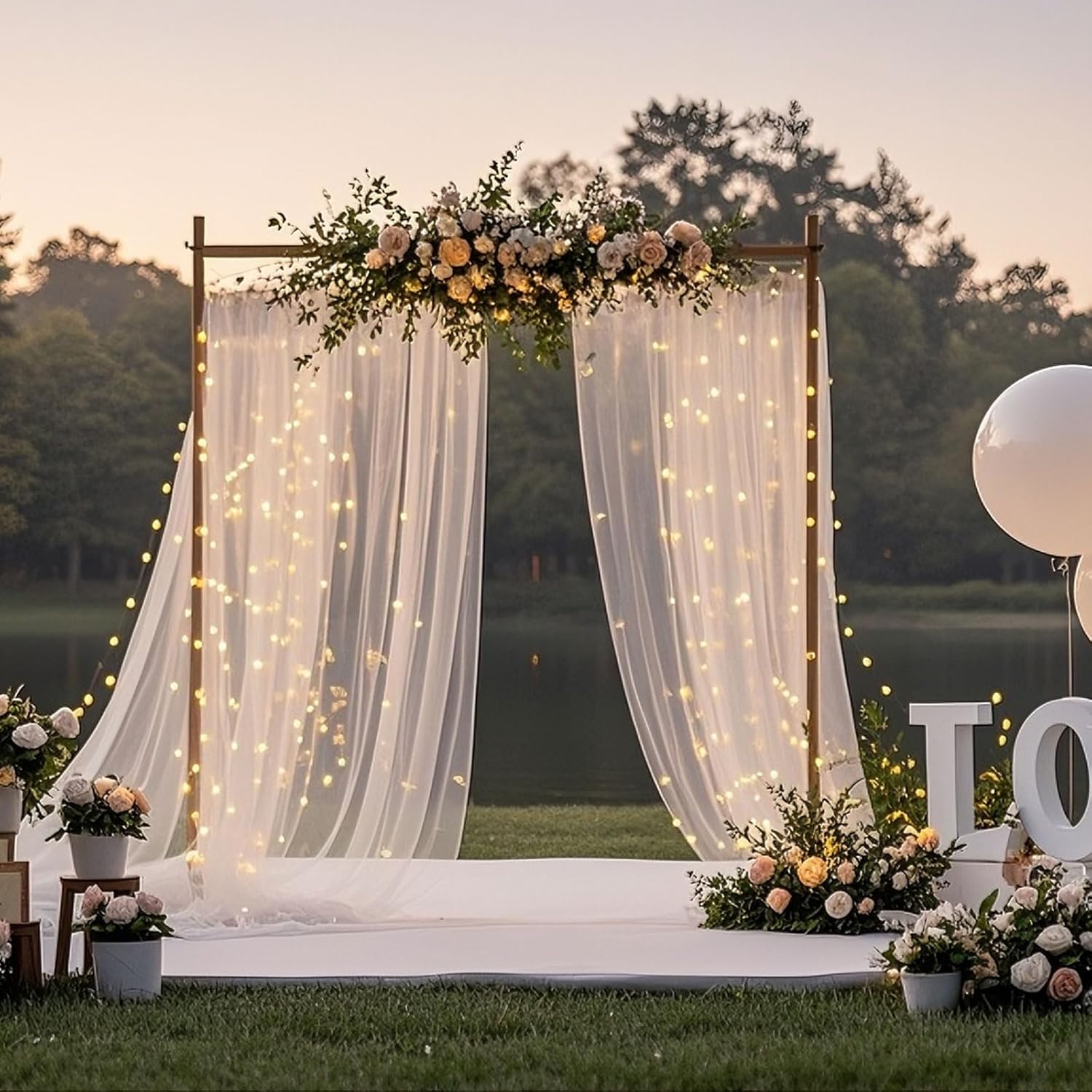 • 【10×8ft Tulle Backdrop Curtain with Lights】Create a dreamy and romantic atmosphere with our Tulle Backdrop Curtain with Lights. It features a 10x8 feet white sheer curtain paired with a 9.8 ft USB-powered warm white 300 LED string light set, complete with 10 transparent clips for easy installation, will surely make an excellent party backdrop once set up.