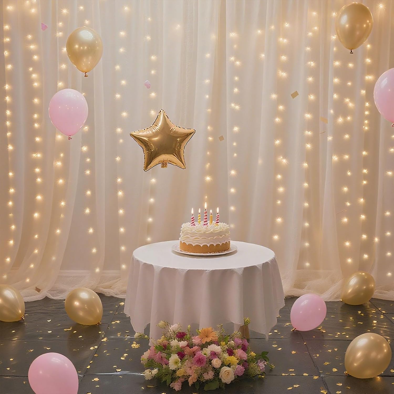 • 【10×8ft Tulle Backdrop Curtain with Lights】Create a dreamy and romantic atmosphere with our Tulle Backdrop Curtain with Lights. It features a 10x8 feet white sheer curtain paired with a 9.8 ft USB-powered warm white 300 LED string light set, complete with 10 transparent clips for easy installation, will surely make an excellent party backdrop once set up.