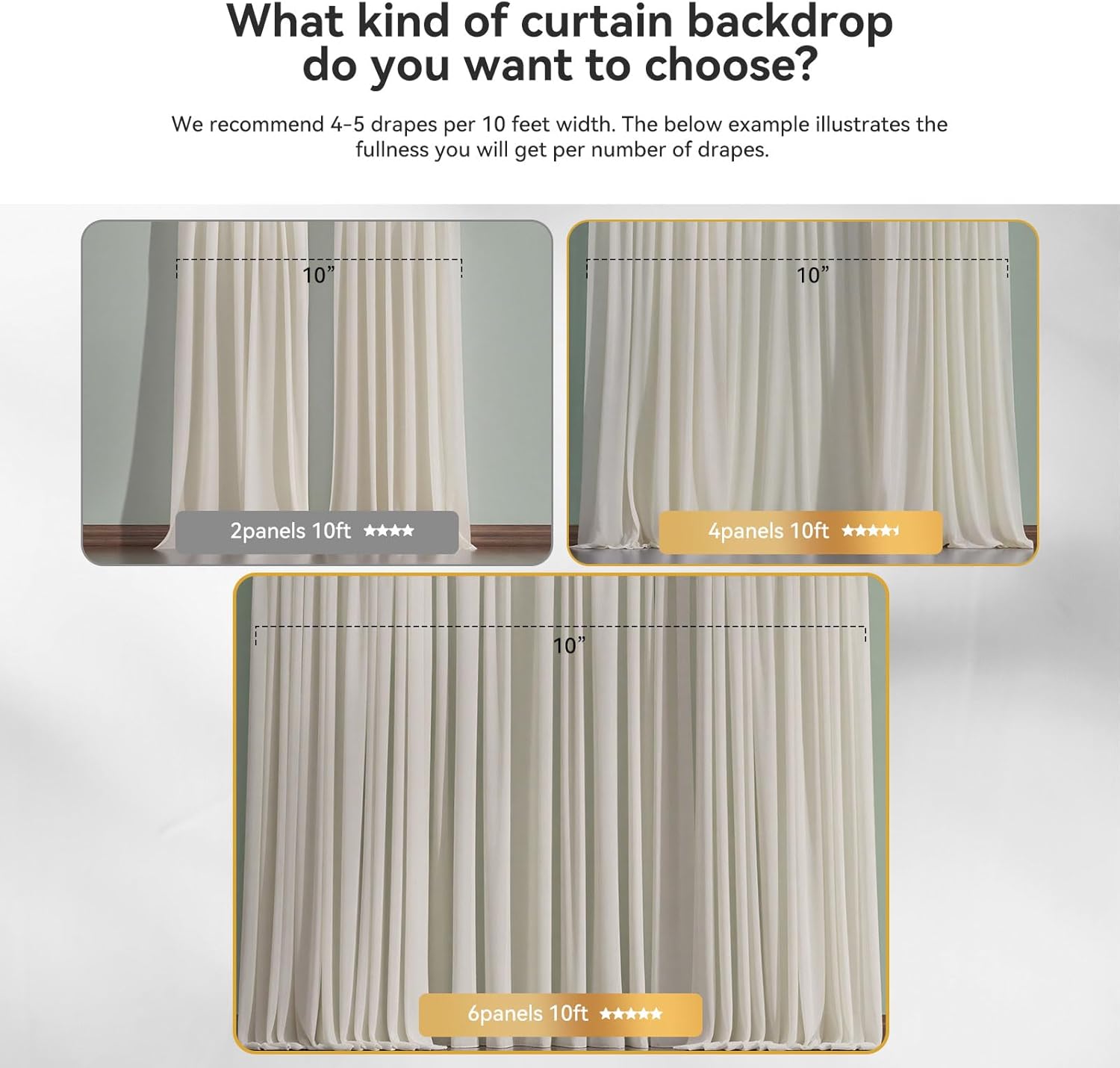10×10ft Tulle Backdrop Curtains with Lights String - 300LED Fairy Lights Sheer Curtain Backdrop for Weddings Baby Shower and Birthday Party Decorations(6 Panels 5×10ft)