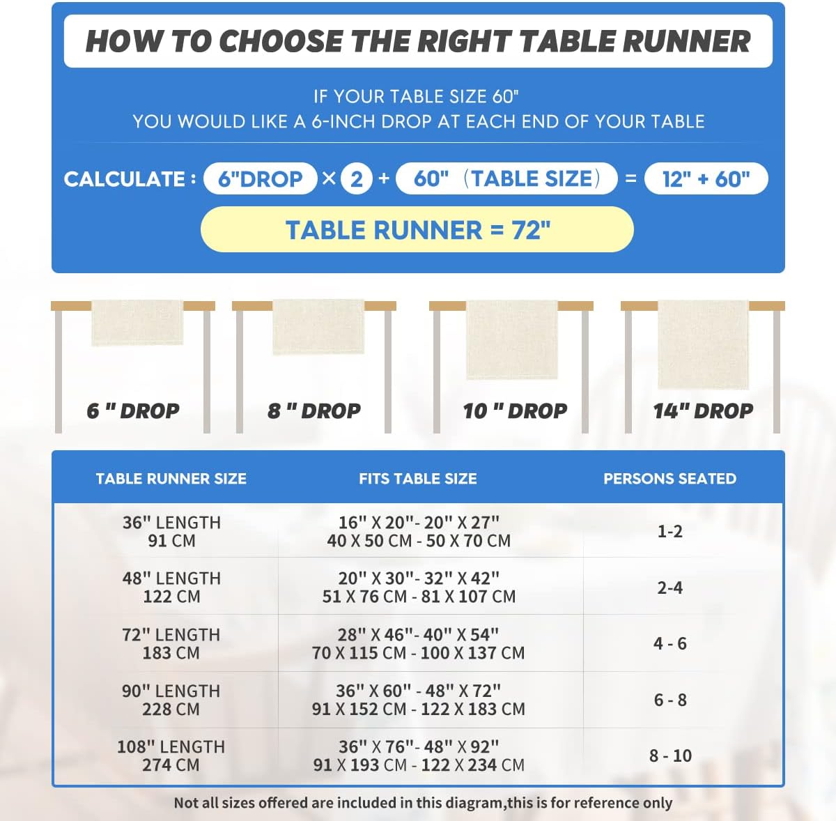 • Fits Table Size : This table runner is 13 x 48 inch, appropriate for a table that can seat 2-4 people, better match your table and give you a delightful dining experience