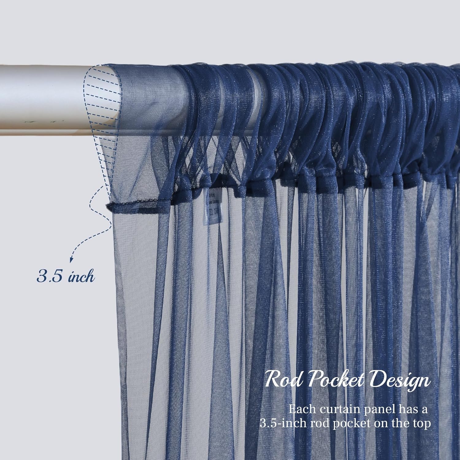 • 【Tulle Backdrop Curtain Panels】You will receive 4 panels of navy blue sheer backdrop curtains. Each curtain panel measures 5 feet wide x 10 feet high. Entire backdrop measures 20 feet wide x 10 feet high. Our curtains for party decoration features lightness and flow, so it may be very thin and transparent, suggest you can buy more to get better effect.