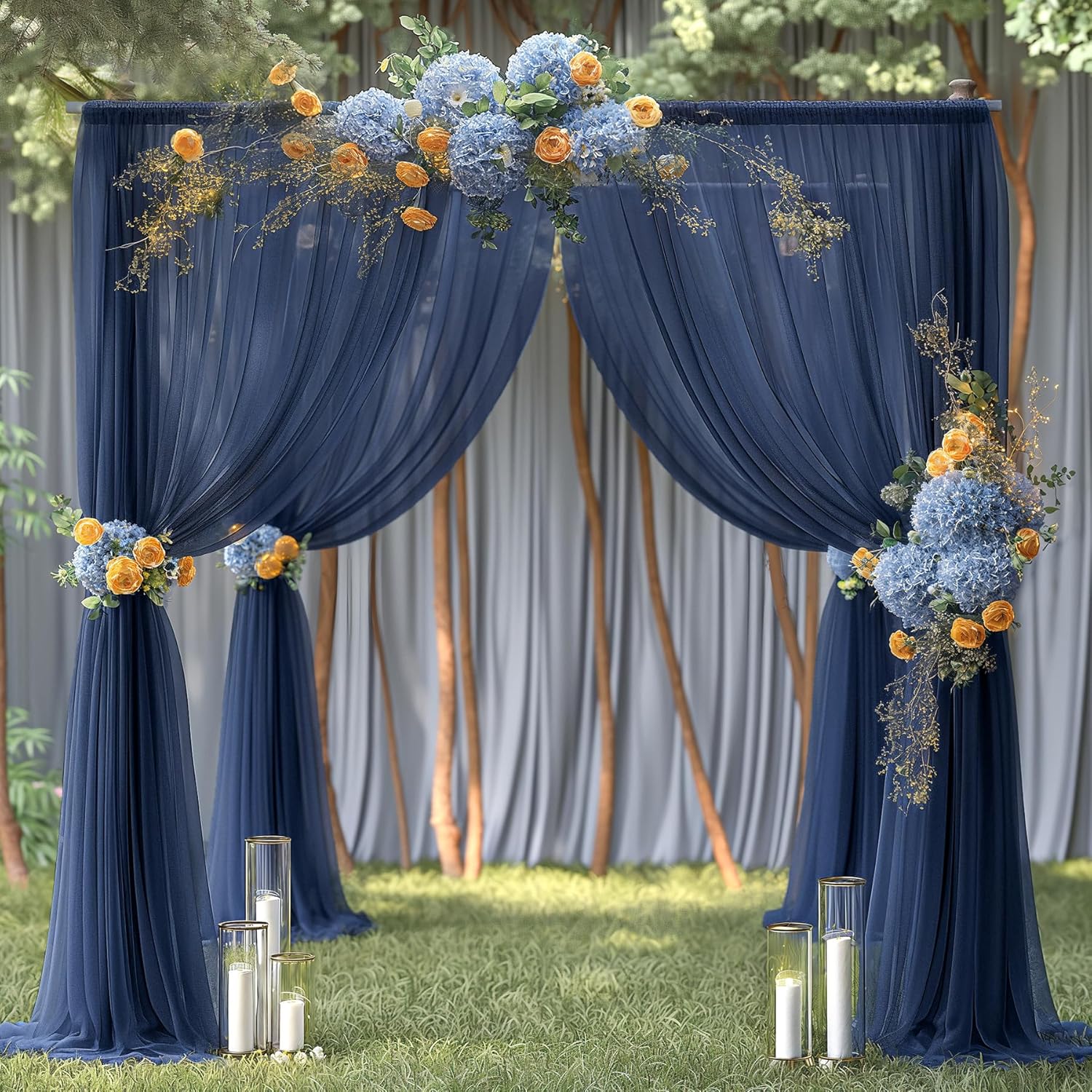 • 【Multiple Use Light Curtain Backdrop】These navy blue sheer backdrop curtains are applicable for any indoor and outdoor occasions. Perfect for weddings arch, receptions, parties, bridal and baby showers, birthdays, candy buffets, dessert tables background, trade shows, wedding stages photography, photo booths, ceremony and more.