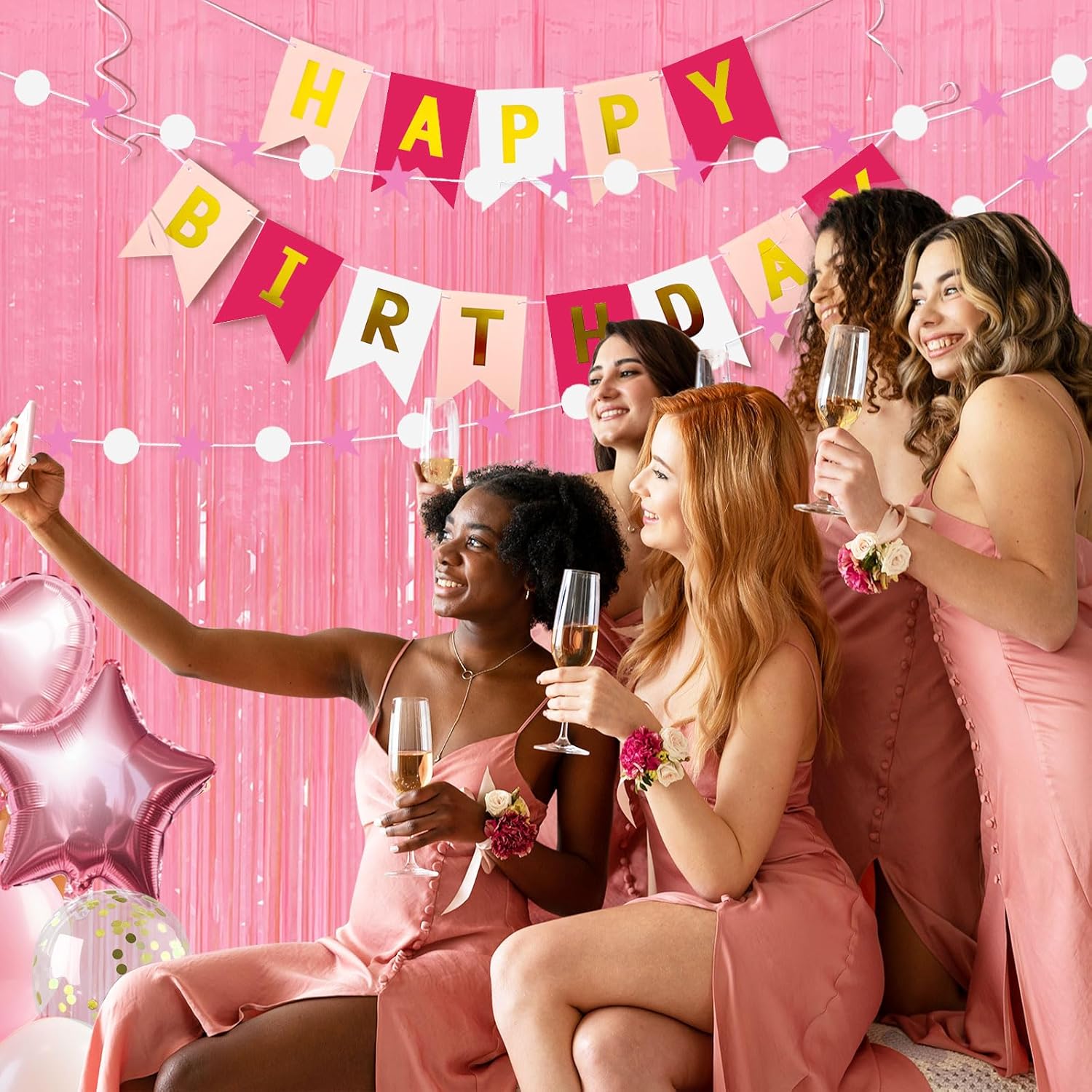 • Pink Fringe backdrop Set (5-Pack): Each dazzling curtain measures 3.28ft x 6.56ft – perfect for doors, walls, or photo booths! These extra-long foil streamers instantly transform any space into a party-ready celebration zone. Mix, layer, and customize your decor for the best results.