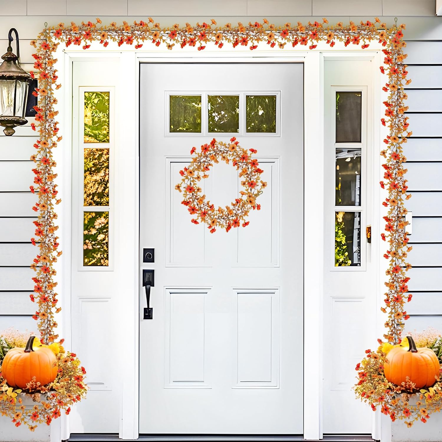 • Versatile Fall Decor: Our orange flower garland perfect for both indoor and outdoor use! Easily enhance your front door wreath, windows, fences, mailboxes, backdrop, walls, mantels, table centerpieces, or DIY projects. Instantly bring cozy fall vibes to your home, porch, or commercial space
