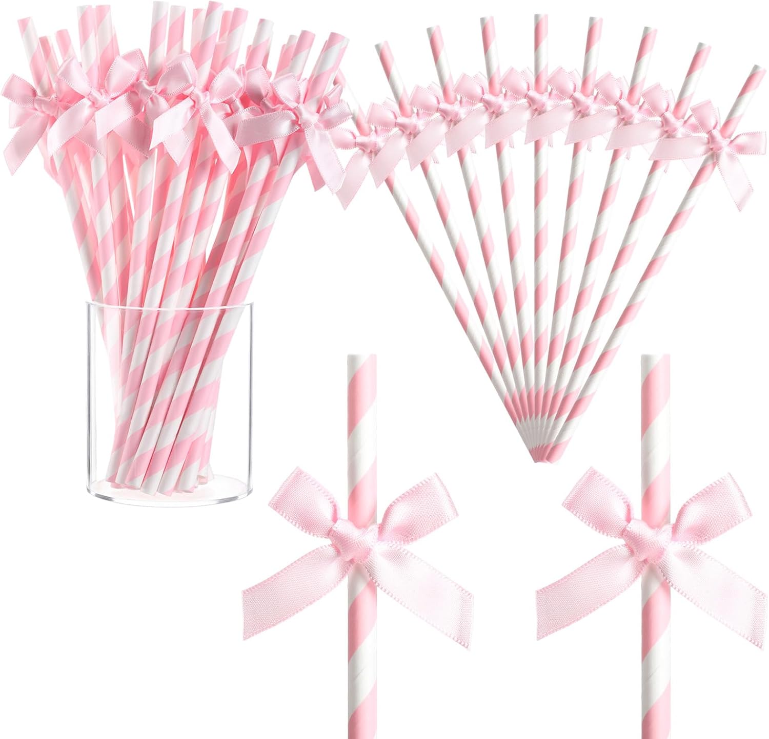 • Quality Material: stripe disposable paper straws are made of quality paper, the bow is made of pink ribbon; These pink party straws are safe and reliable, with stable patterns, not easy to fade, and not easy to break or fall apart even when placed in liquids, making them the perfect accessories for daily drinking