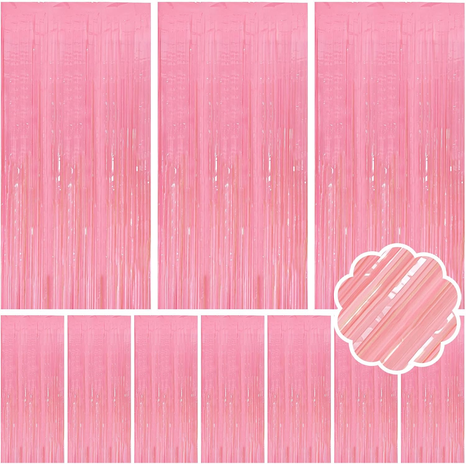 10 Pack Pastel Pink Streamers Party Decorations Party Backdrop Foil Fringe Tinsel Curtain Halloween Baby Shower Valentines Wedding Birthday Decorations for Women