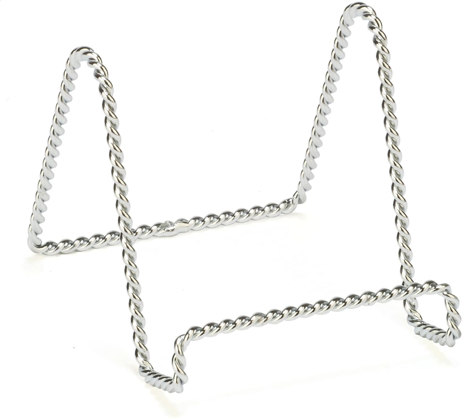 TRIPAR Decorative Twisted Wire Stand, Chrome Display (3 Inch Depth) Tabletop Easel Sleek & Modern Look - Perfect for Books, Plates, Photos & More