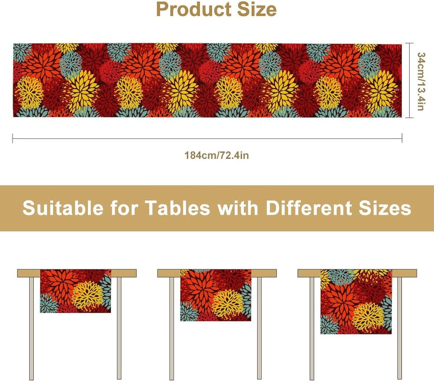 • The product includes: a table runner with a size of 13x120 Inch