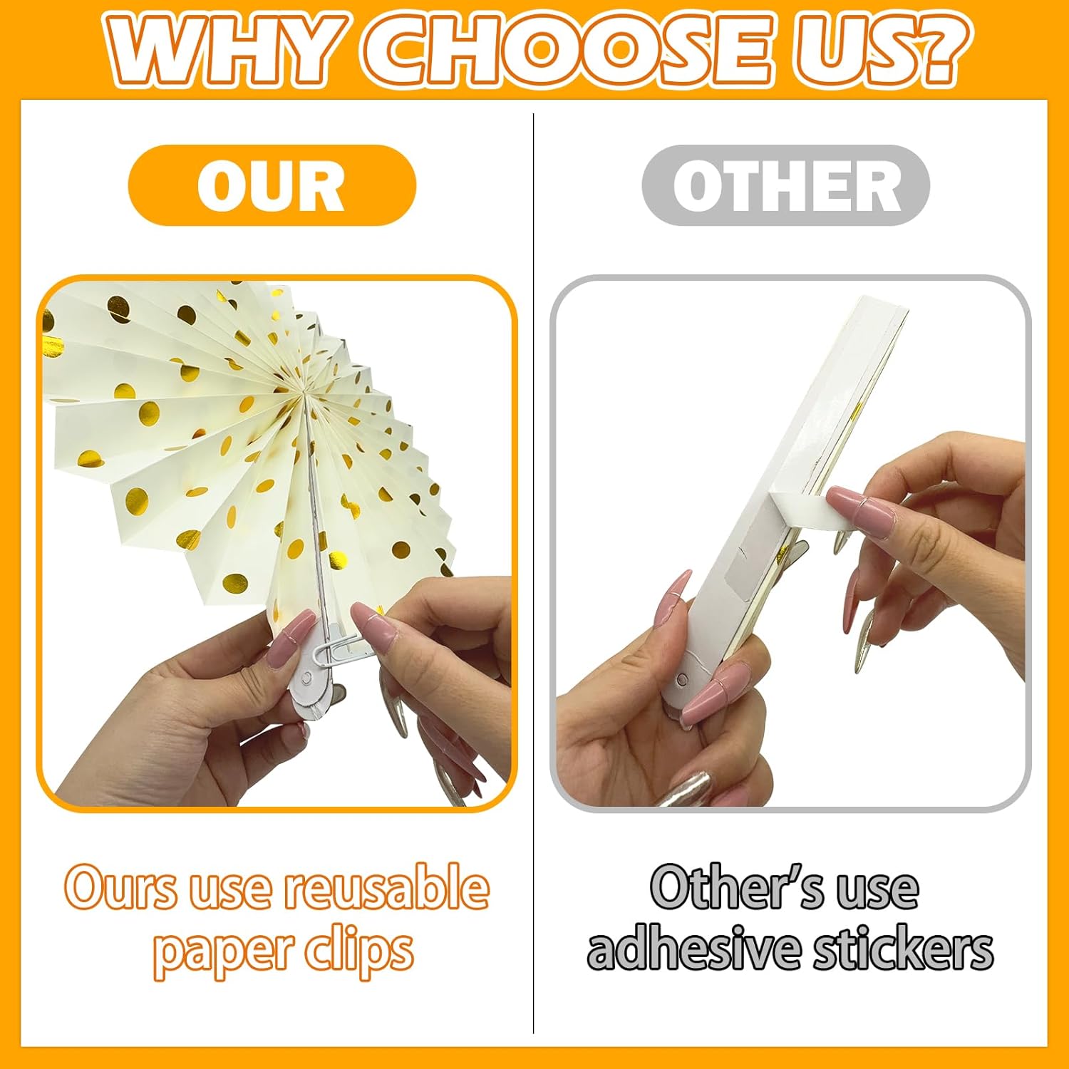 • 【Material】: Our pink peach and orange paper lanterns are made of quality thin paper and wire bracket. They are lightweight, and can be hung on the ceiling or wall. Meanwhile, compared to other paper fans party decorations that use adhesive stickers, our hanging honeycomb paper fans all use reusable paper clips. And our pennant flag banner are made of quality paper too.