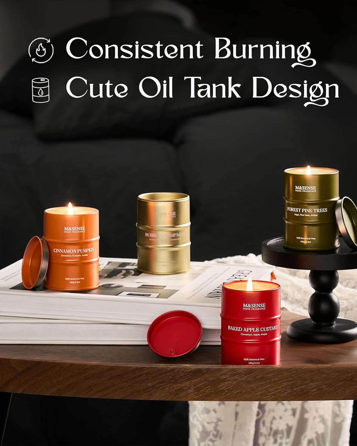 • 💚 Sustainable Material - M&SENSE candles are all crafted with the finest and most natural ingredients. Using high-end vegetable wax and unbleached cotton wicks in a reusable and recyclable tin. Packaged in recycled honeycomb paper and cardboard box for a more sustainable future.