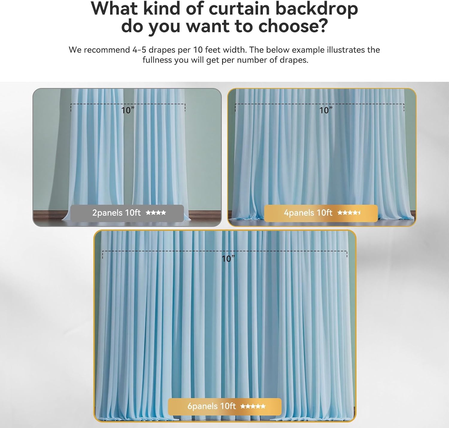 • 【10×8ft Tulle Backdrop Curtain with Lights】Create a dreamy and romantic atmosphere with our Tulle Backdrop Curtain with Lights. It features a 10x8 feet white sheer curtain paired with a 9.8 ft USB-powered warm white 300 LED string light set, complete with 10 transparent clips for easy installation, will surely make an excellent party backdrop once set up.