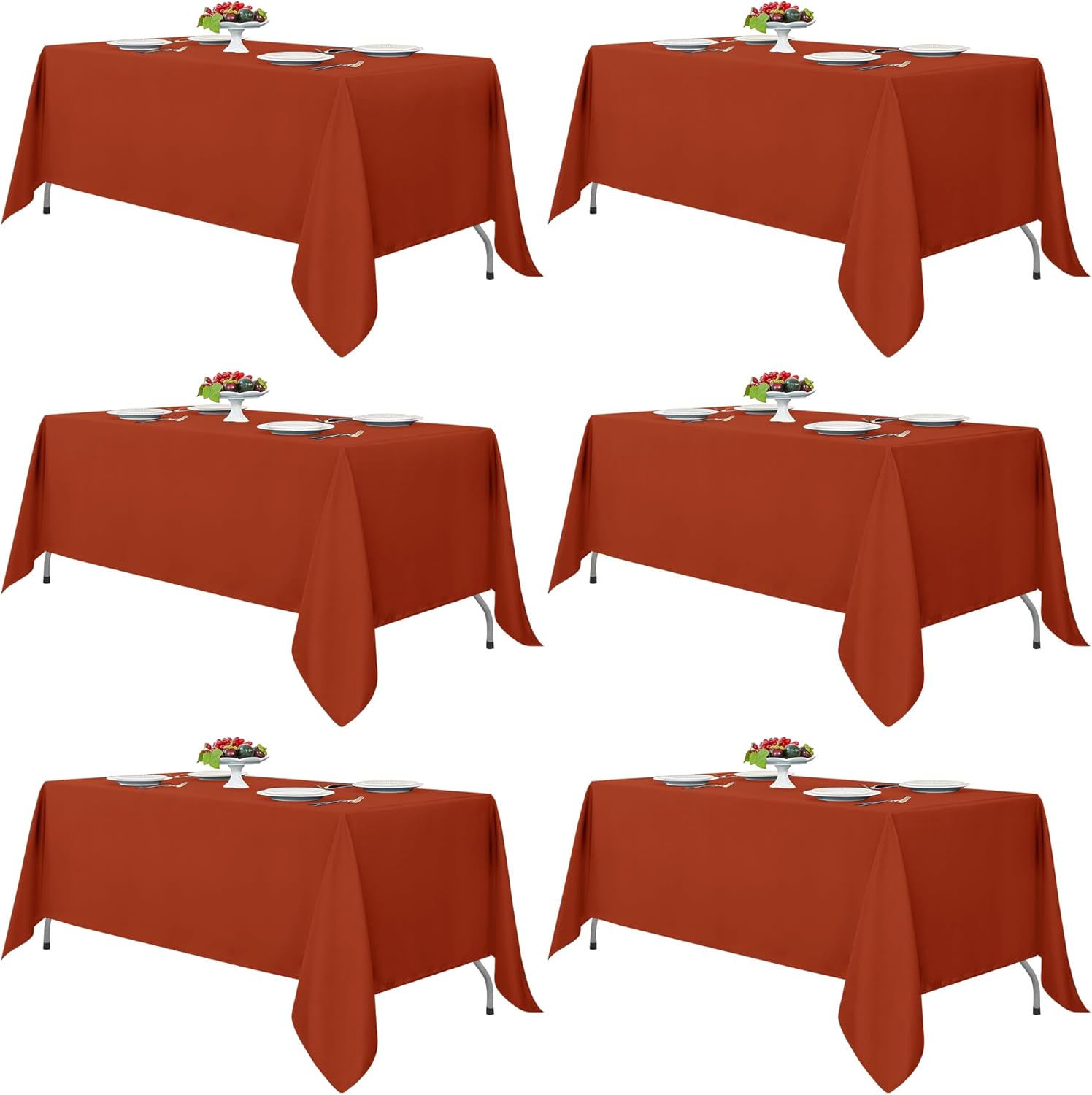 Fitable Rust Rectangle Tablecloths for 6 Foot Tables, 6 Pack - 70 x 108 Inches - Stain Resistant and Washable Fall Table Clothes, Polyester Fabric Table Covers for Wedding, Party, Banquet, Buffect