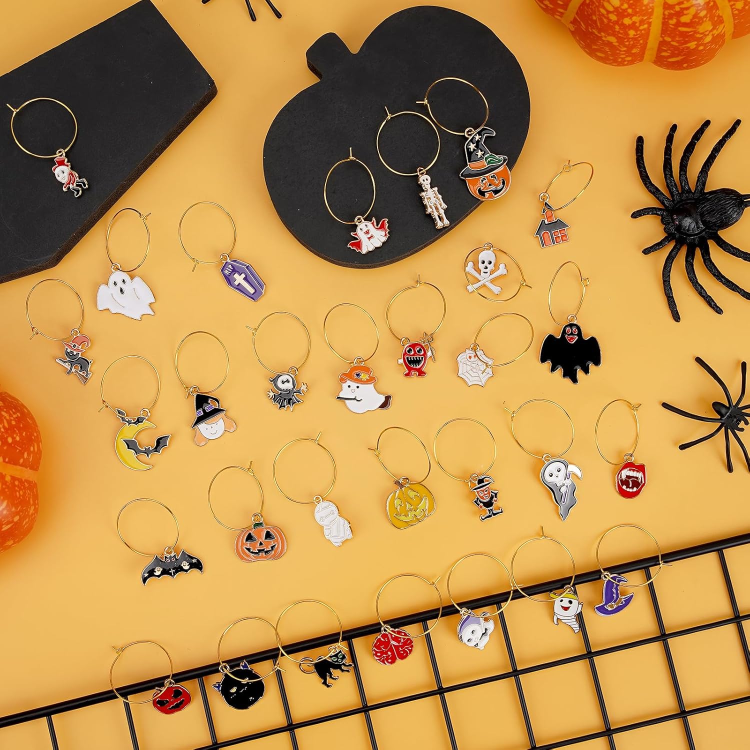 • Unique Design: These are autumn themed wine charms for stem glasses with many Halloween elements and 30 autumn wine glass charms. Each wine glass markers is unique, including pumpkin, little devil, wizard hat, broom, moon, castle, bat, spider, mummy, skeleton, cat, creating a scary and fun Halloween atmosphere, bringing more joy to your Halloween party. Different shapes of cocktail decorations can not only easily attract others' attention, but also decorate your wine glass well
