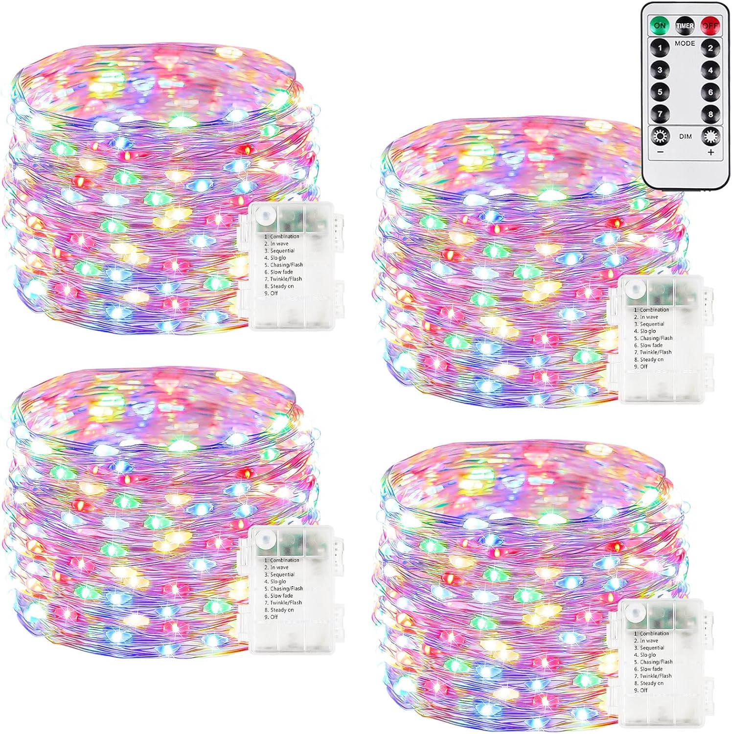 4Pack 80Ft 240LED Fairy Lights Battery Operated with Remote, Waterproof String Lights with Timer for Indoor & Outdoor, Twinkle Lights Battery Powered for Bedroom Christmas Decorations (Multicolor)
