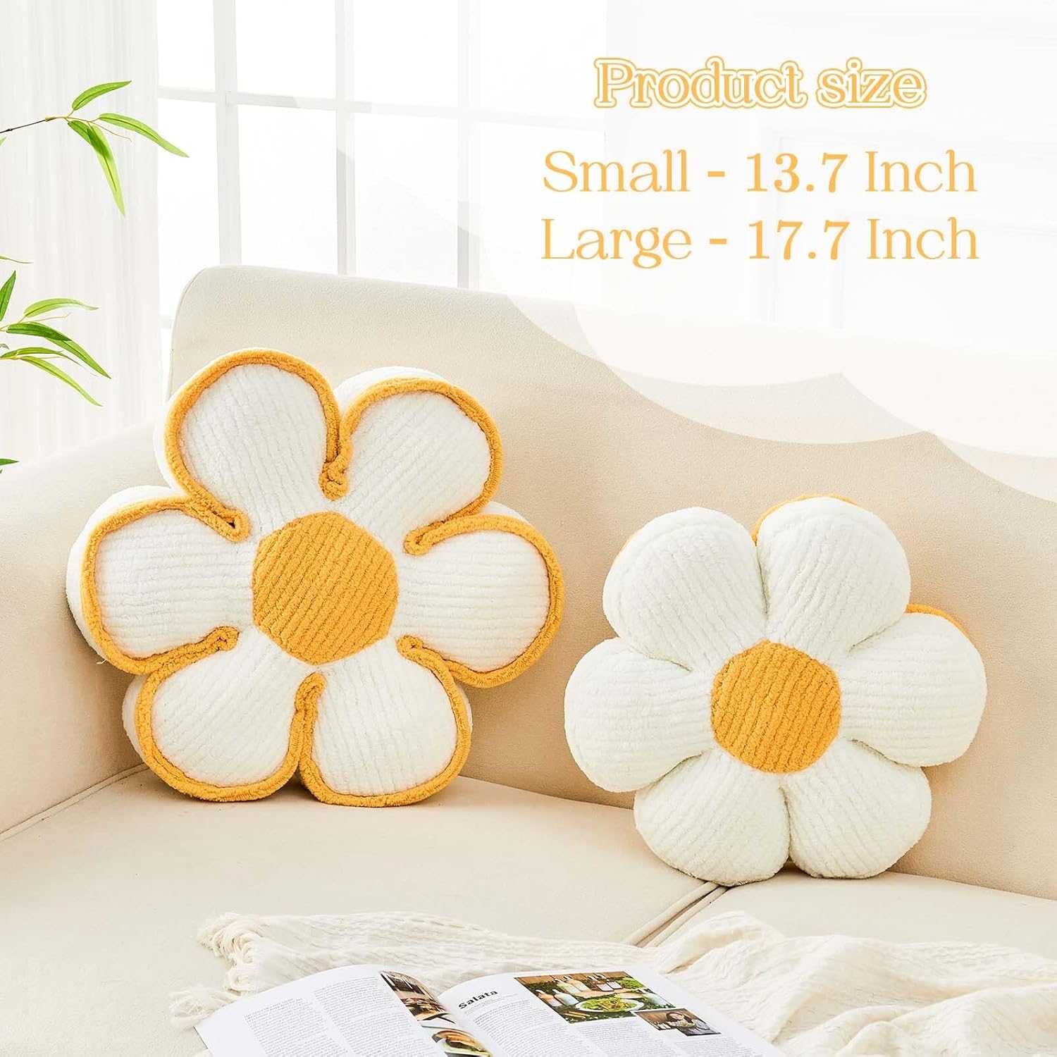 • DECORATIVE FLOWER PILLOWS OF VARIOUS SIZES - This floral throw pillow is not only a practical choice, but also a decorative addition to your living space. Small size - 13.7 Inch with 3 inch thickness, Large size - 17.7 inch with 4 inch thickness, whether placed on the floor, sofa or bed, it can effortlessly enhance the overall beauty of the room, adding cuteness and vitality to your bedroom decor a feeling of.