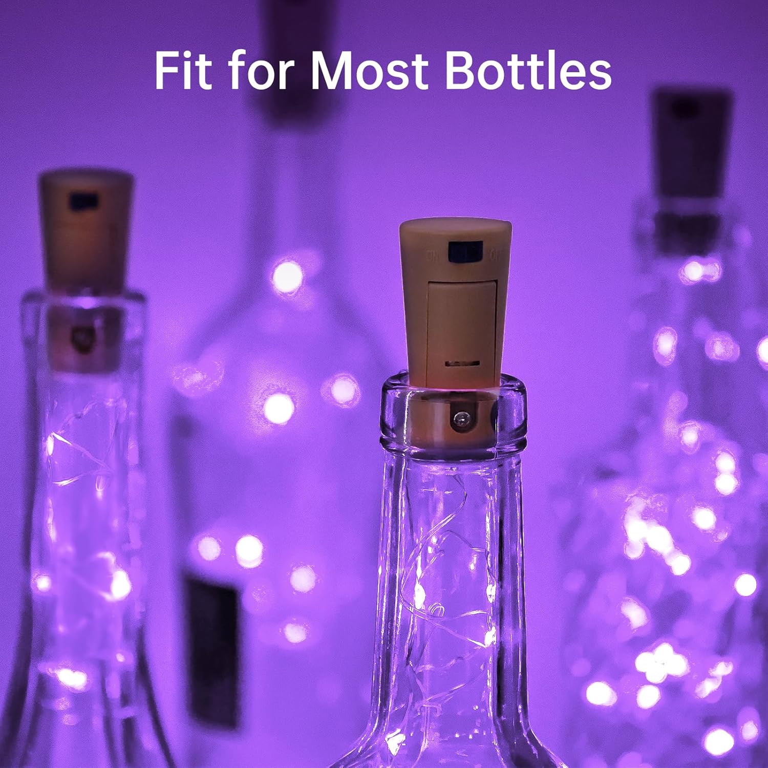 Aluan Wine Bottle Lights with Cork 10 Pack 20 LED Waterproof Halloween Fairy Light Battery Operated, Mini LED Cork Lights for Liquor Bottles Wedding Table Decor Party Jar Bar Table Decoration, Purple