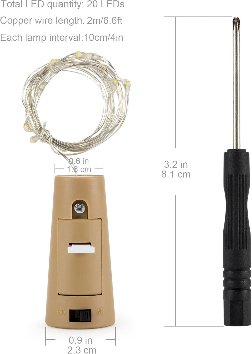 • Cork Design: The diameter of the cork is from 0.6 in to 0.9 in, which is the universal size for most wine bottles. This wine bottle fairy lights fits for glass, liquor, beer, whiskey bottles and other kind of bottles. Toggle the button on the cork to control on/off, easy to operate