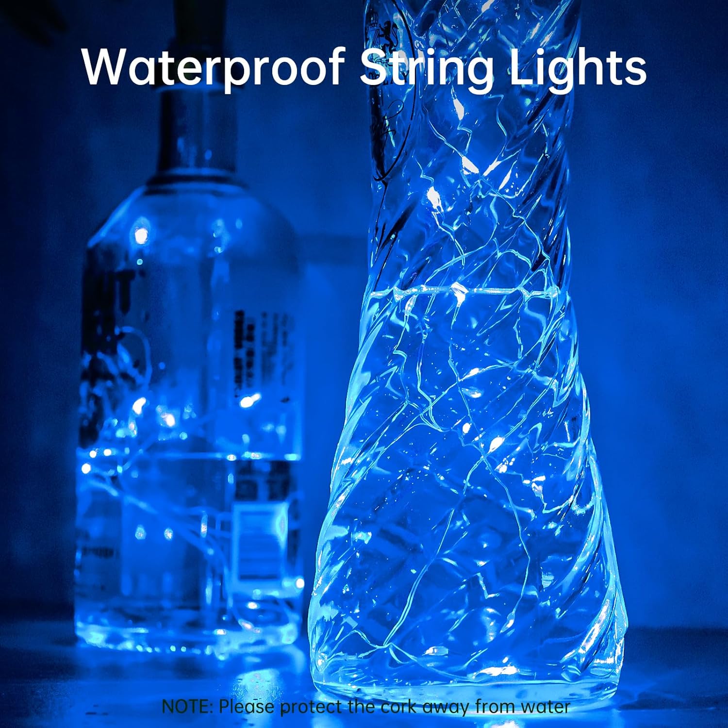 Aluan Wine Bottle Lights with Cork 10 Pack 20 LED Christmas Mini Fairy Lights for Indoor, Waterproof Battery Operated Cork Lights for Liquor Bottles Party Jar Wedding Reception Bar Decoration, Blue