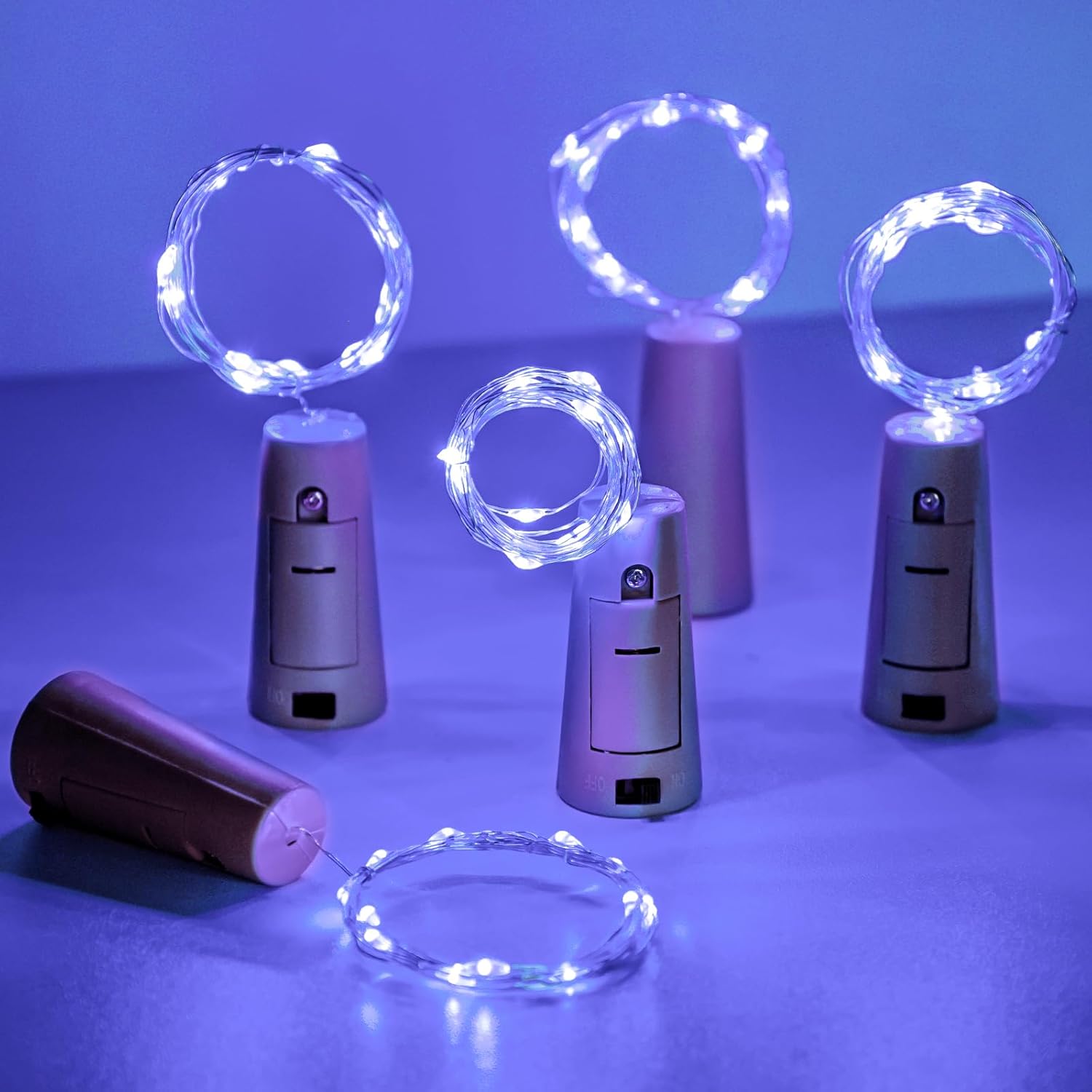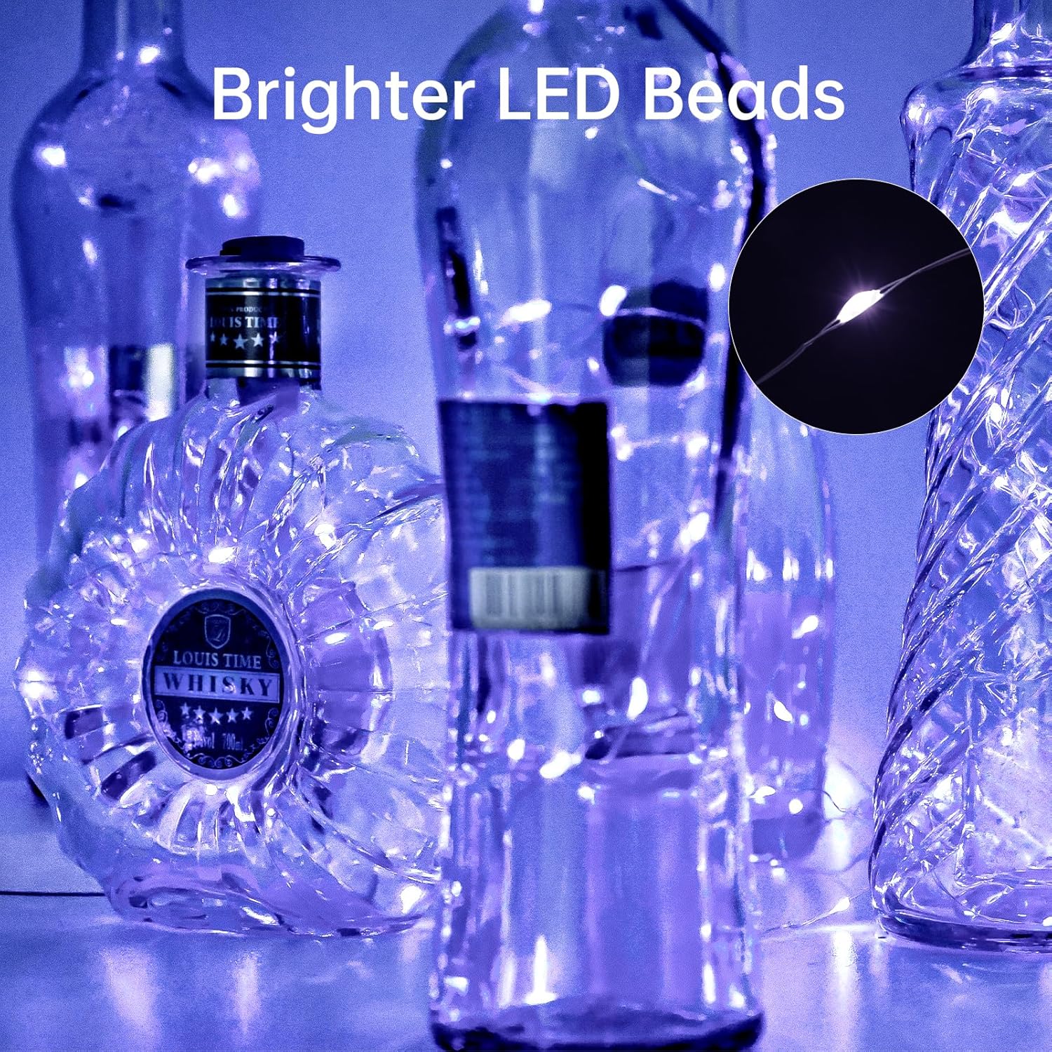 • 20LED Fairy Lights: The wine bottle lights with cork is 2m/ 6.6ft long, 10 strands in 1 pack, each strand has 20 cool white LED beads in total, space between per LED: 10 cm/ 4 in. The 20 LED lights are bright enough for illumination and decoration, but will not flash to your eyes, ideal for indoor & outdoor using