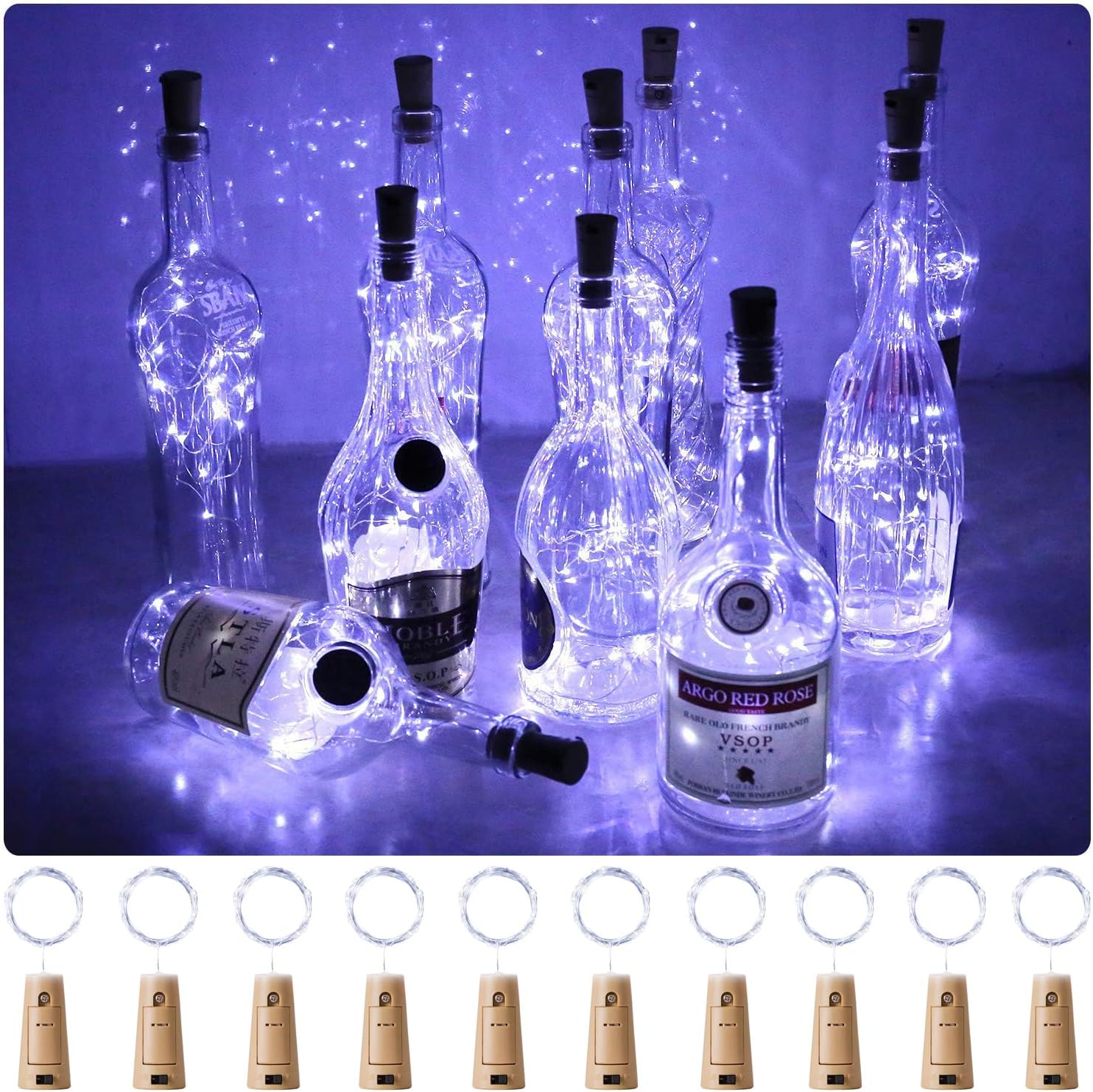Aluan Wine Bottle Lights with Cork, Christmas Lights 10 Pack 20 LED Mini Fairy String Lights, Waterproof Battery Operated Cork Lamp for Liquor Bottles Wedding Reception Table Decorations, Cool White