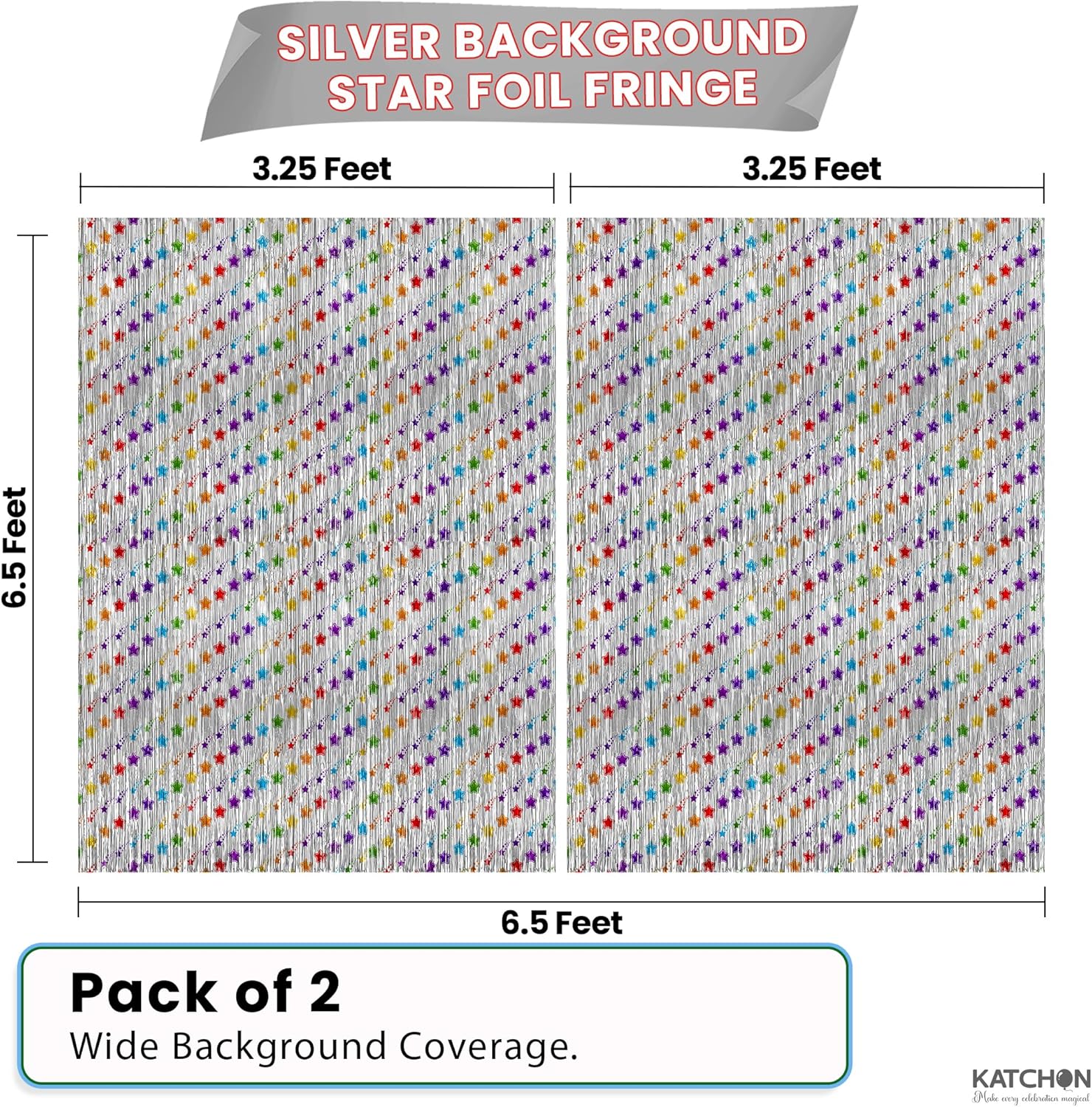 KatchOn, Star Silver Foil Fringe Curtains – Pack of 2 | Silver Fringe Backdrop for Birthday, Labor Day Decorations, Patriotic Decorations | Star Streamers for Unicorn, Rainbow, Space Party Decoration