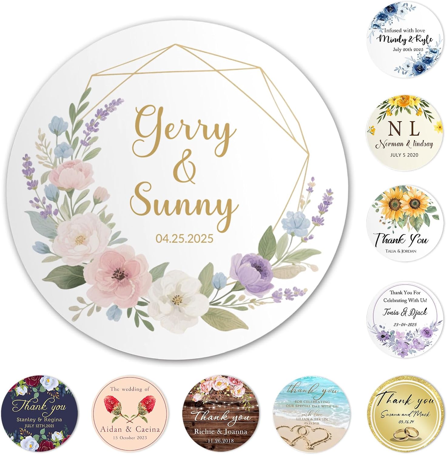 • Abundant Design Options,Versatile Usage:Elevate your wedding with our 35 diverse wreath style custom round stickers.From classic to contemporary,there's a design to match every theme.The wide selection ensures your wedding favors or gift boxes stand out.Ideal not just for weddings,our customized stickers are suitable for various occasions.Use them for birthday parties, business promotions,or any special event to leave a memorable mark.