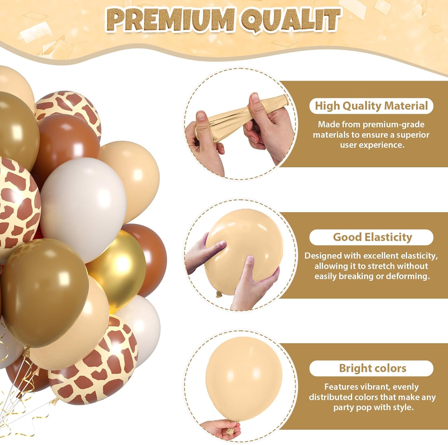 Safari Balloons, 60pcs Jungle Balloons, Brown Gold White Balloon Giraffe Print Balloon For Birthday Baby Shower Safari Jungle Forest Animal Theme Party Wedding Bachelorette Engagement Decorations