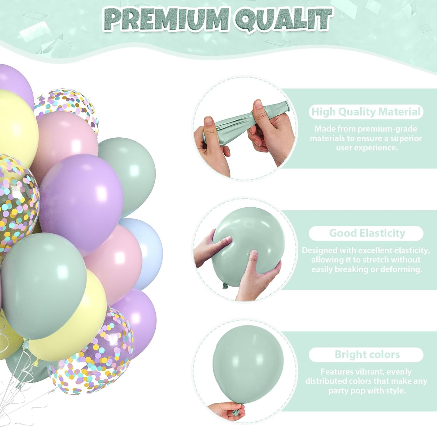 Pastel Balloons, 60pcs Pastel Color Balloons, Macaron Green Pink Purple Teal Blue Balloon, Colorful Confetti Balloon For Girls Women Lady Birthday Baby Shower Party Wedding Bridal Shower Bachelorette