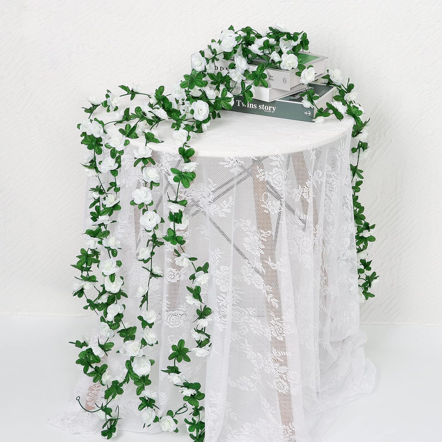• 【Packaging and Size】The package includes 18 pcs fake rose vines. Each rose garland is 8 FT long, flower is 1.6 inches in diameter, each garland holds about 45 white flowers and 270 green leaves.